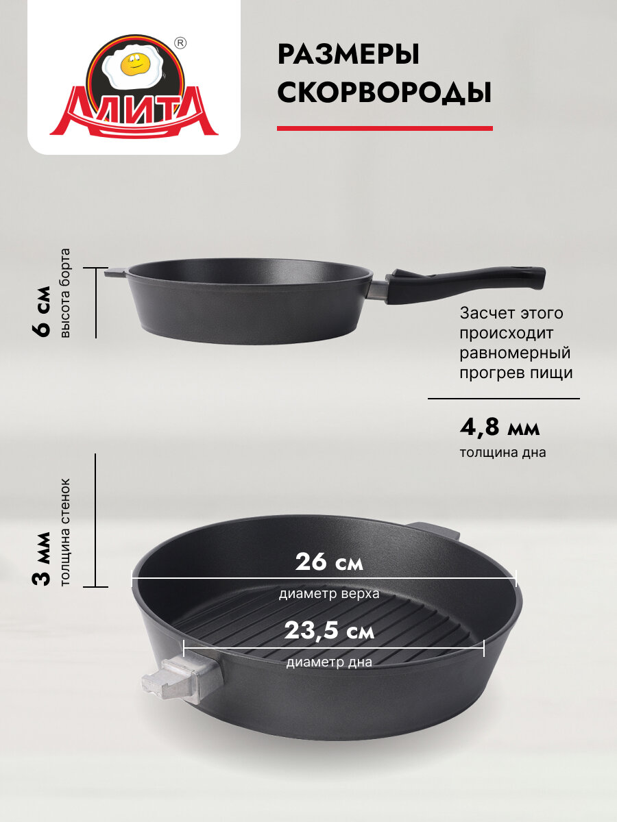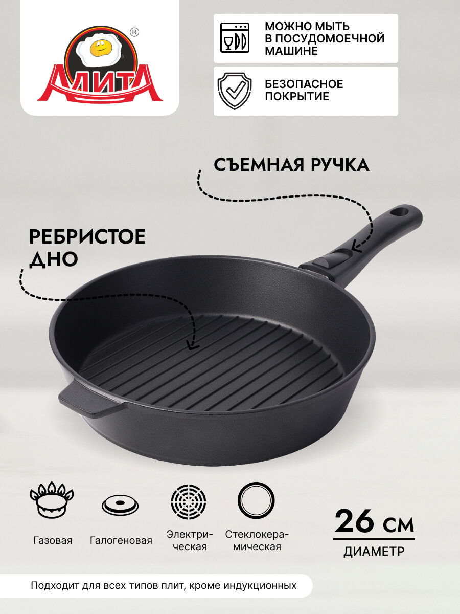 Отзывы на Сковорода гриль 26 см со съемной ручкой антипригарная алюминиевая литая с покрытием, Антрацит