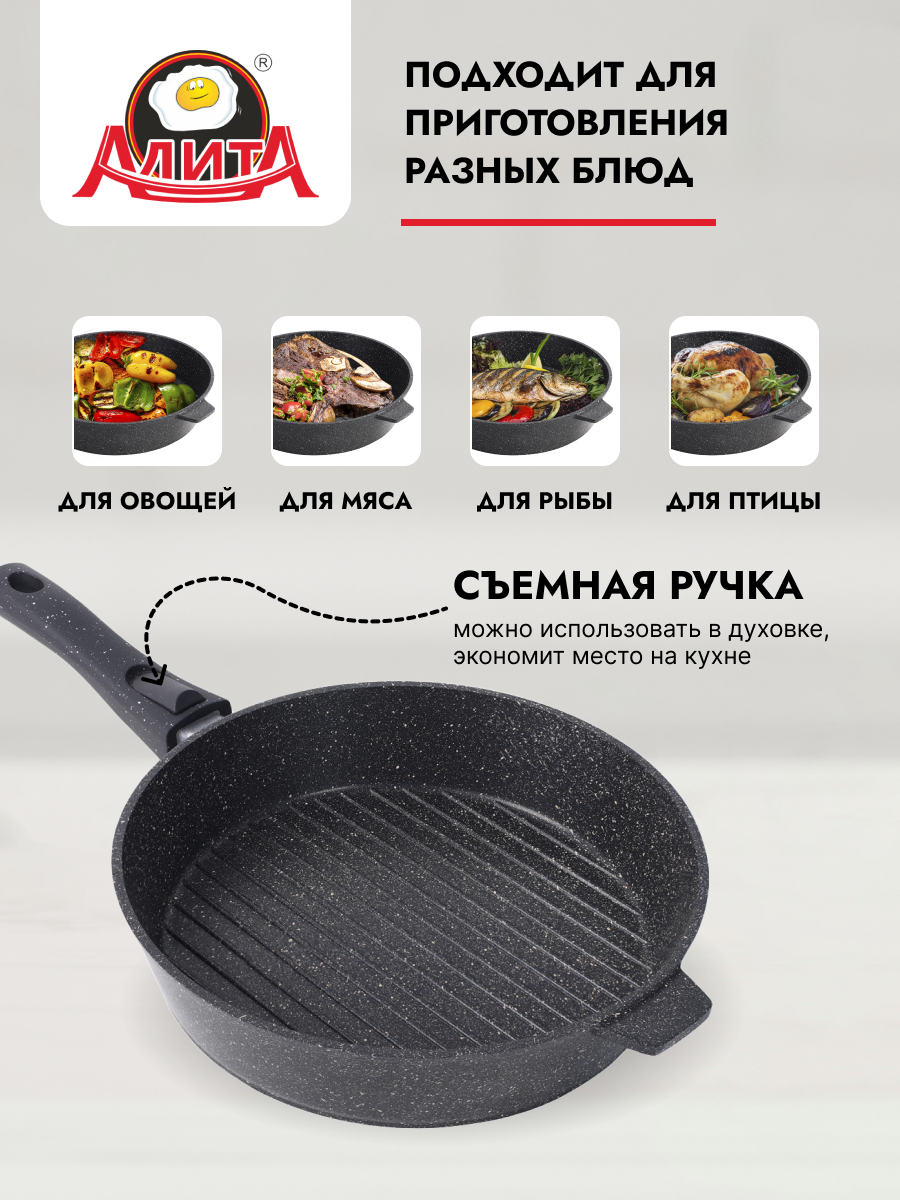 Отзывы на Сковорода гриль 26 см со съемной ручкой антипригарная алюминиевая литая с покрытием, Природный камень