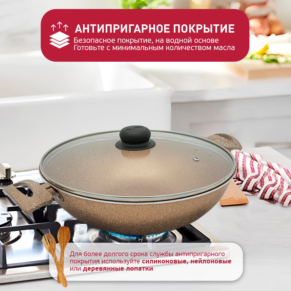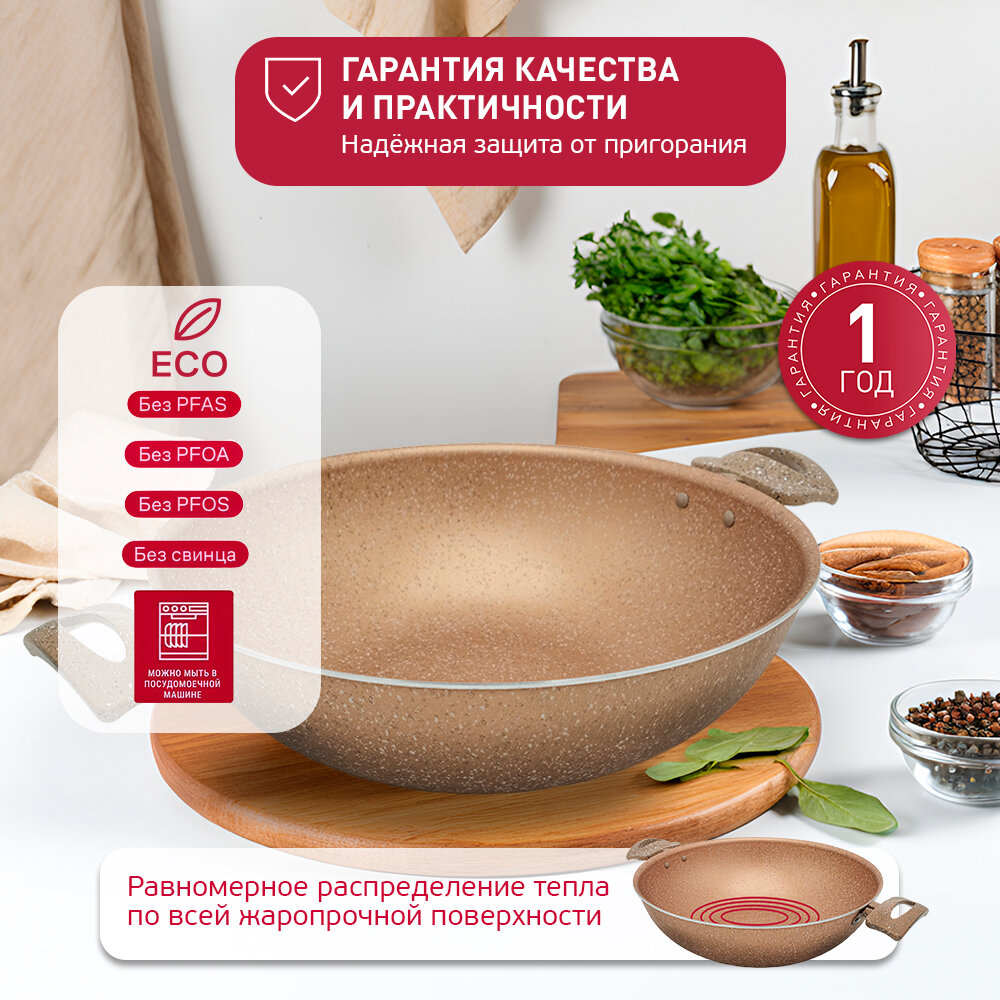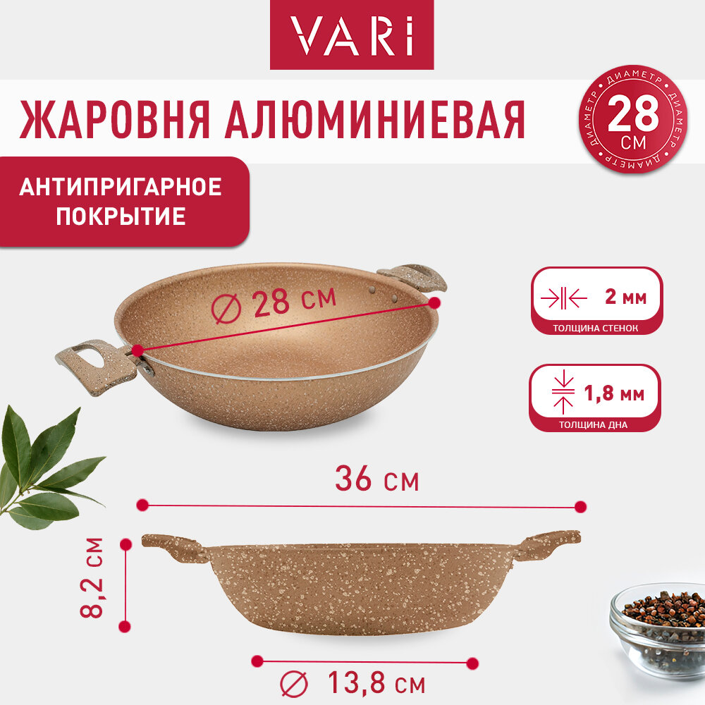 Жаровня штампованная коричневый гранит, с двумя ручками, с крышкой, 28см информация: