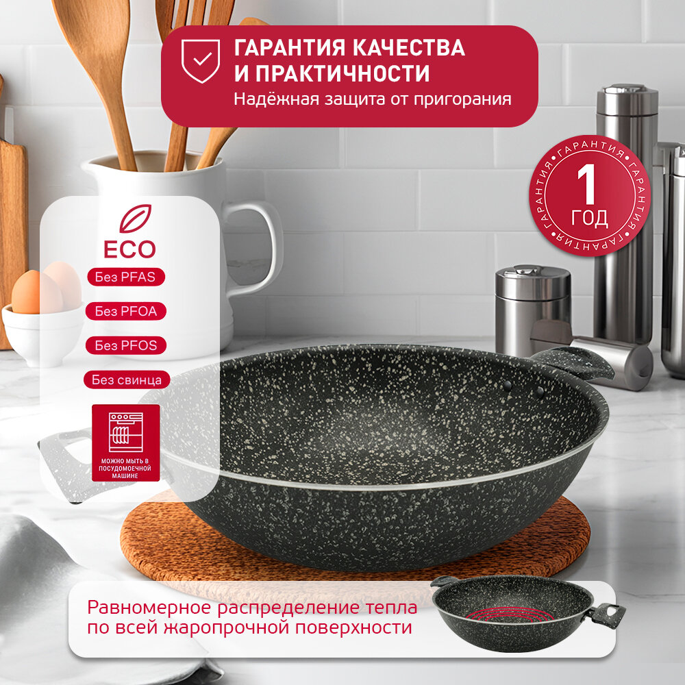 Жаровня штампованная черный гранит, с двумя ручками, с крышкой, 28см информация: