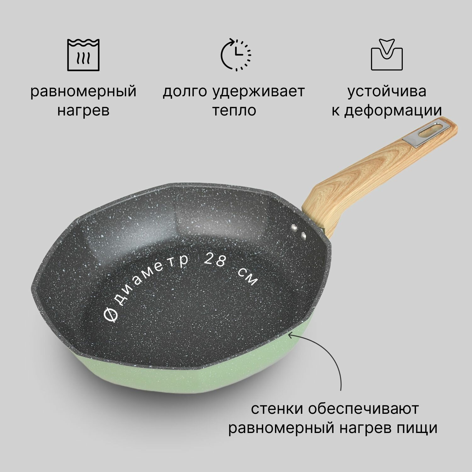 Сковорода Домовой Octava, 28 см, металл, антипригарная, для индукции, оливковая информация: