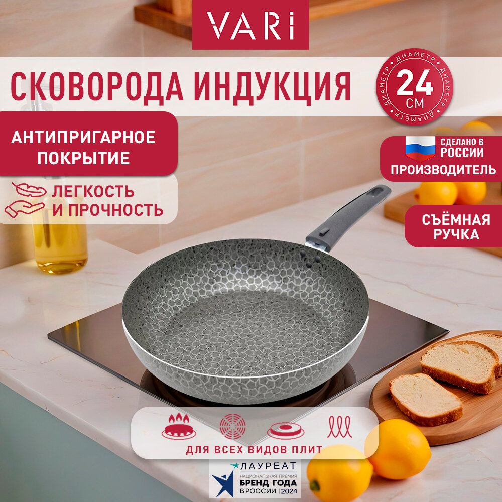 10 цен на Сковорода 24 см со съемной ручкой без крышки с антипригарным покрытием, Космик
