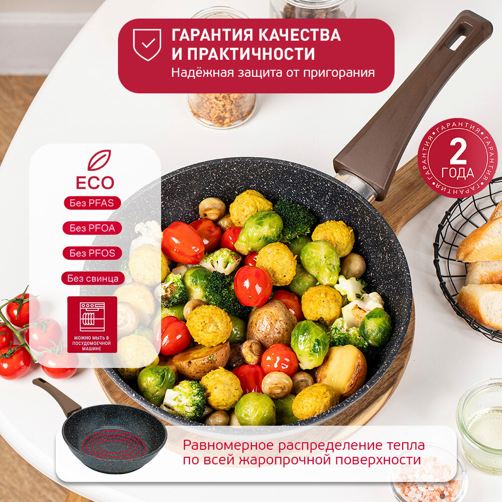 10 цен на Сковорода литая VARI "Меркурий" с индукцией 22см, с ручкой soft-touch, с антипригарным покрытием, с толстым дном