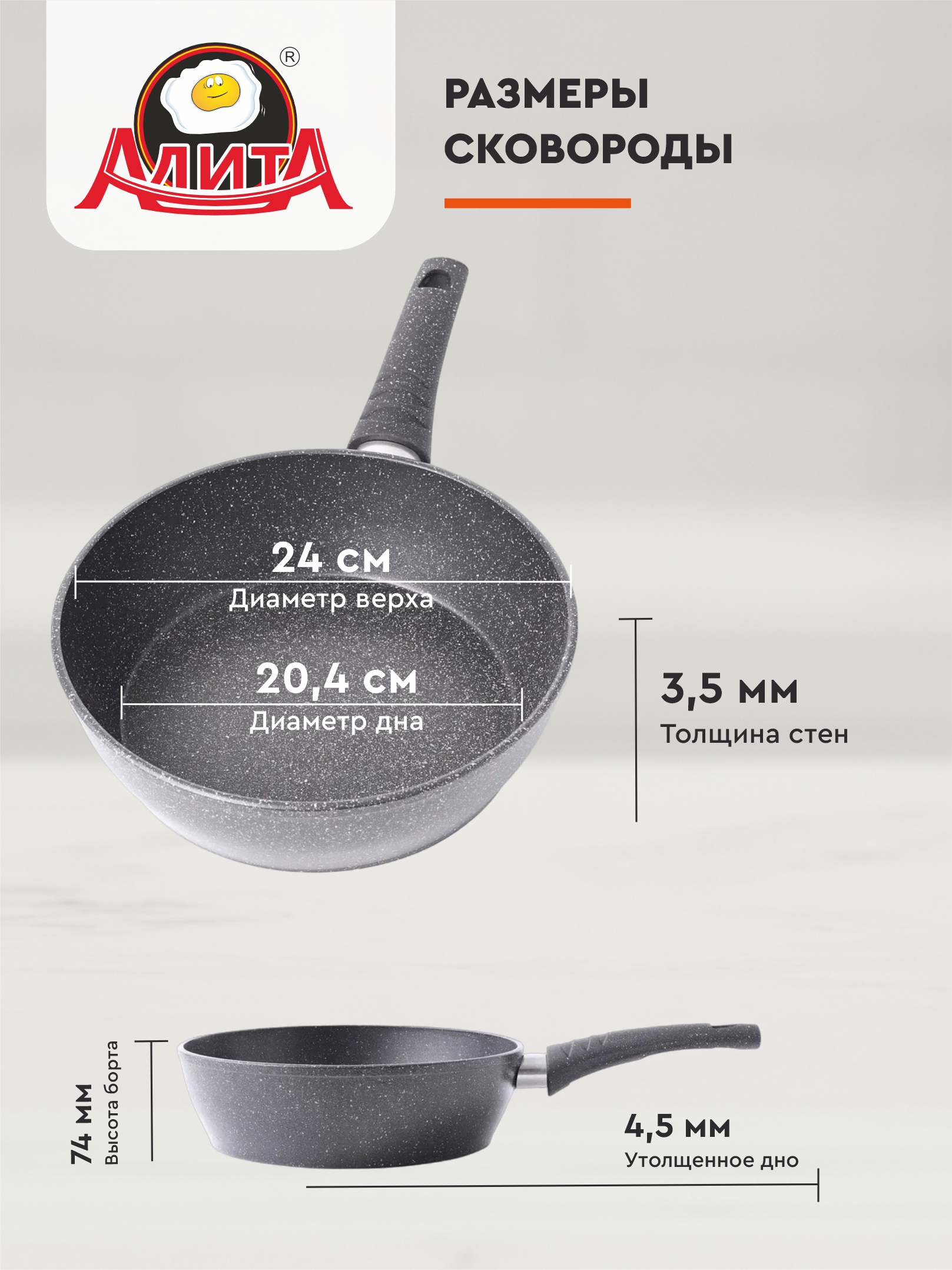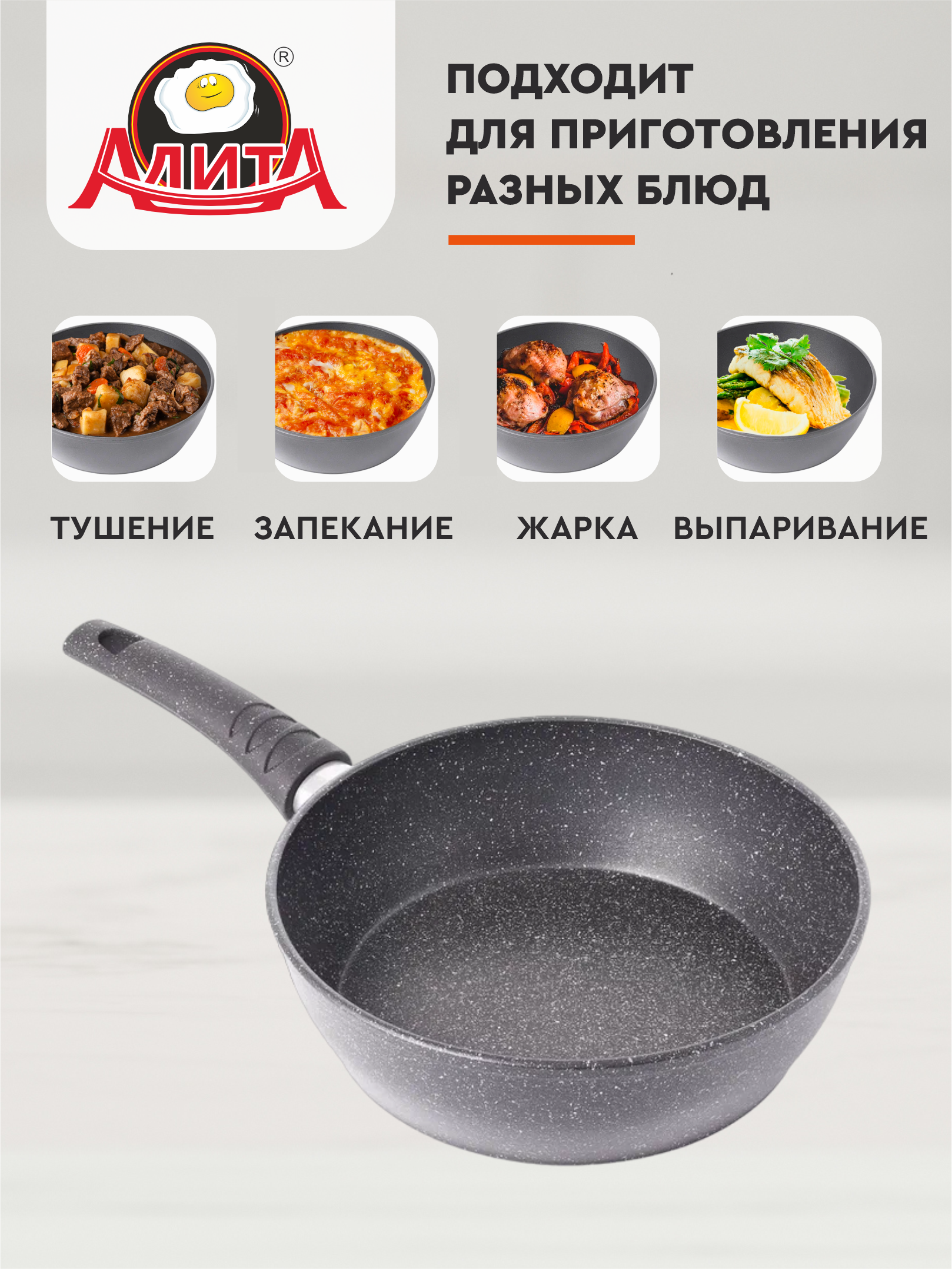 Сковорода 24 см антипригарная глубокая литая, Надежда, Природный камень информация: