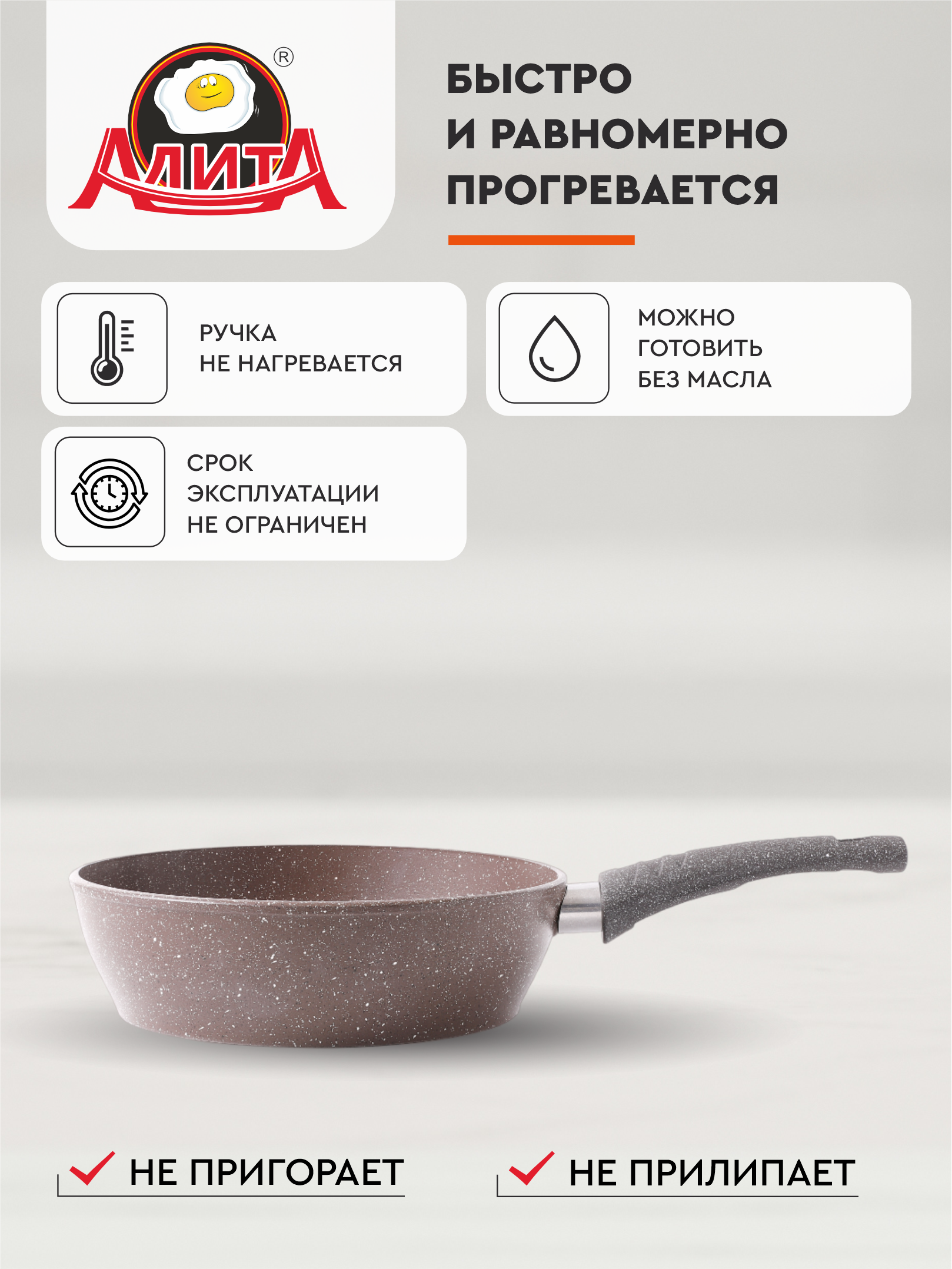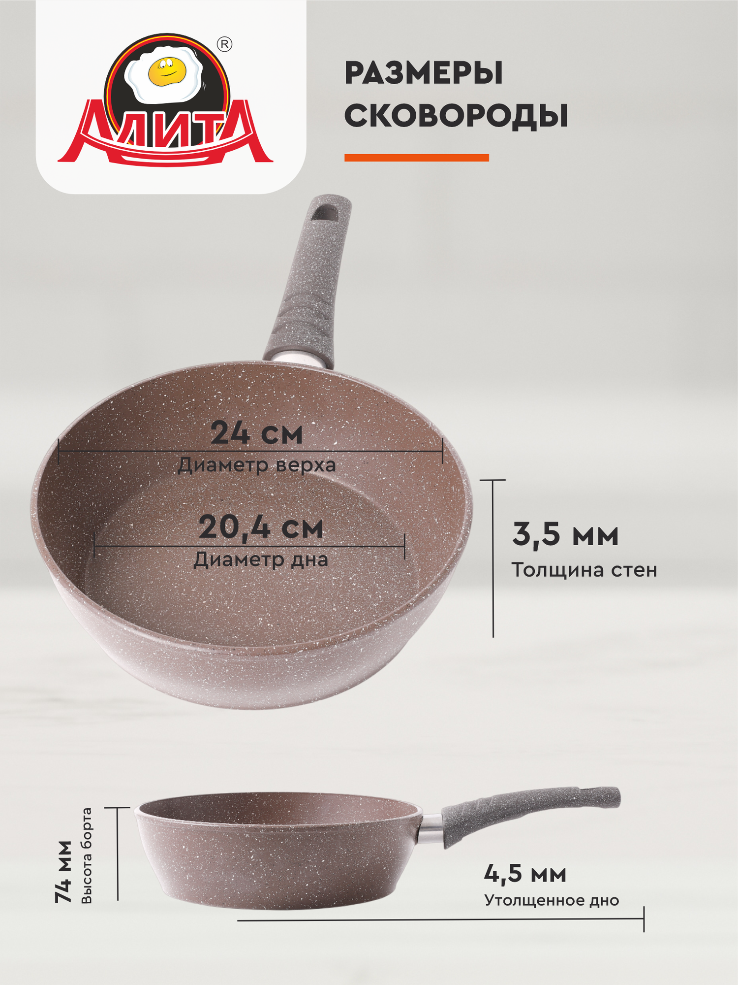 Сковорода 24 см антипригарная глубокая литая, Надежда, Браун информация: