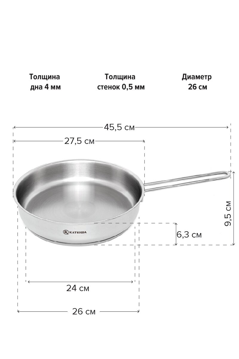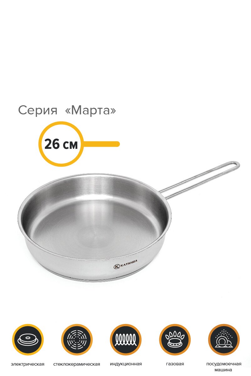 Сковорода без крышки, нержавеющая сталь, 26 см, Марта, КАТЮША информация: