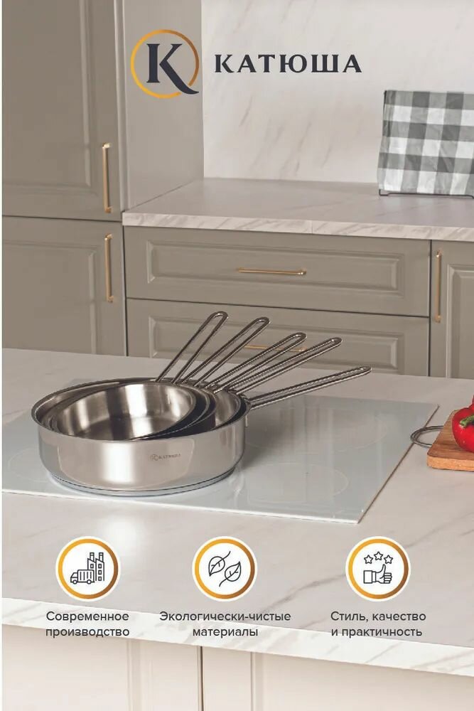 Сковорода без крышки, нержавеющая сталь, 22 см, Марта, КАТЮША 1 852 ₽
