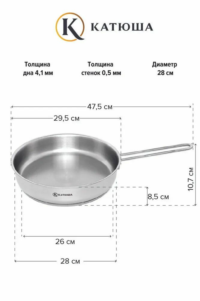 Сковорода катюша Марта нержавеющая сталь, 28 см, без крышки 130-280-0 7 605 ₽