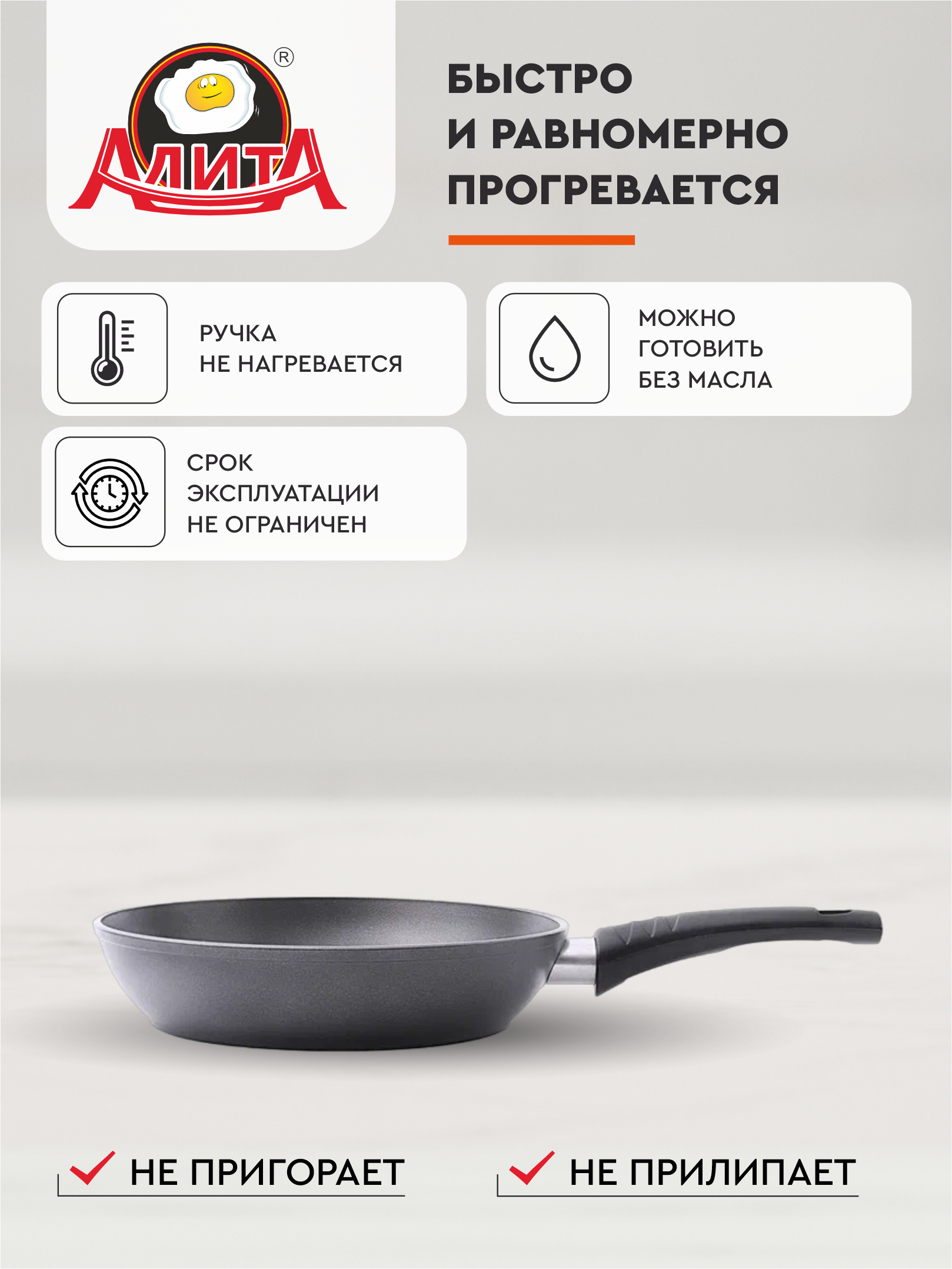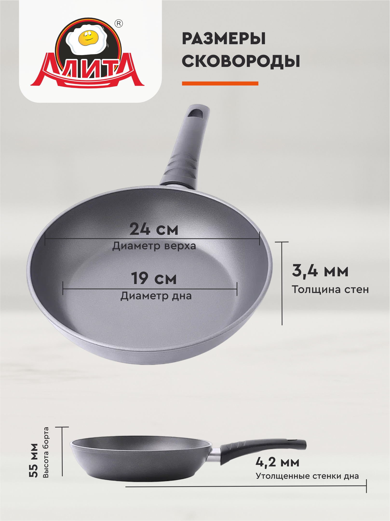 Отзывы на Сковорода 24 см антипригарная алюминиевая литая глубокая, Антрацит