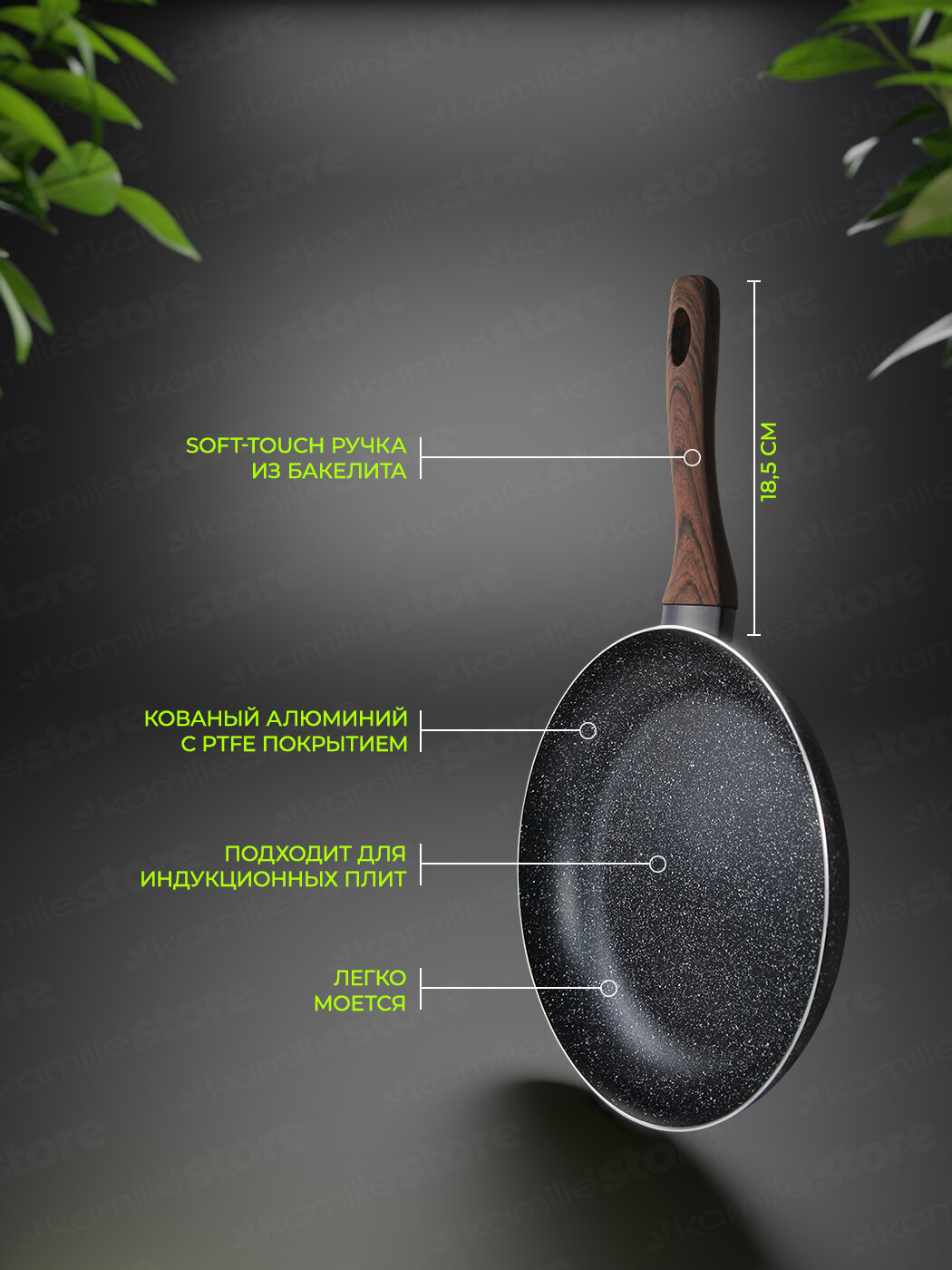 10 цен на Сковорода 24 см. из алюминия Kamille KM 4113MR с мраморным покрытием (24 см. / черный)