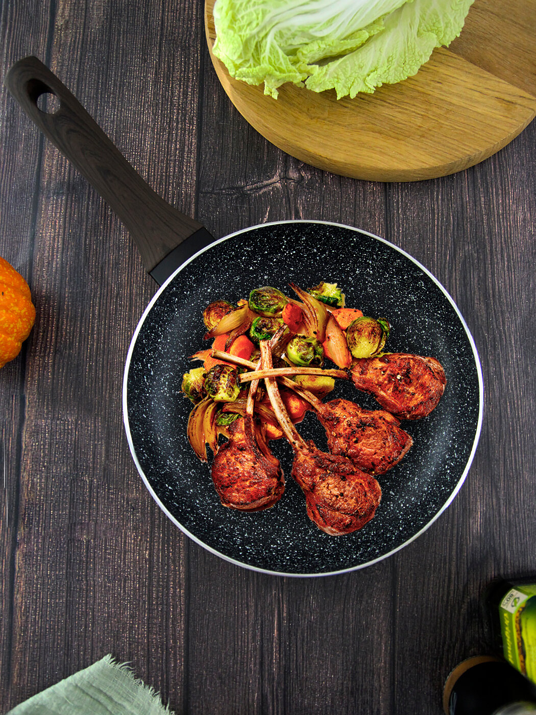 Сковорода со съемной ручкой и крышкой 26 см Vigoroso Nero (индукция, глубокая сковорода)