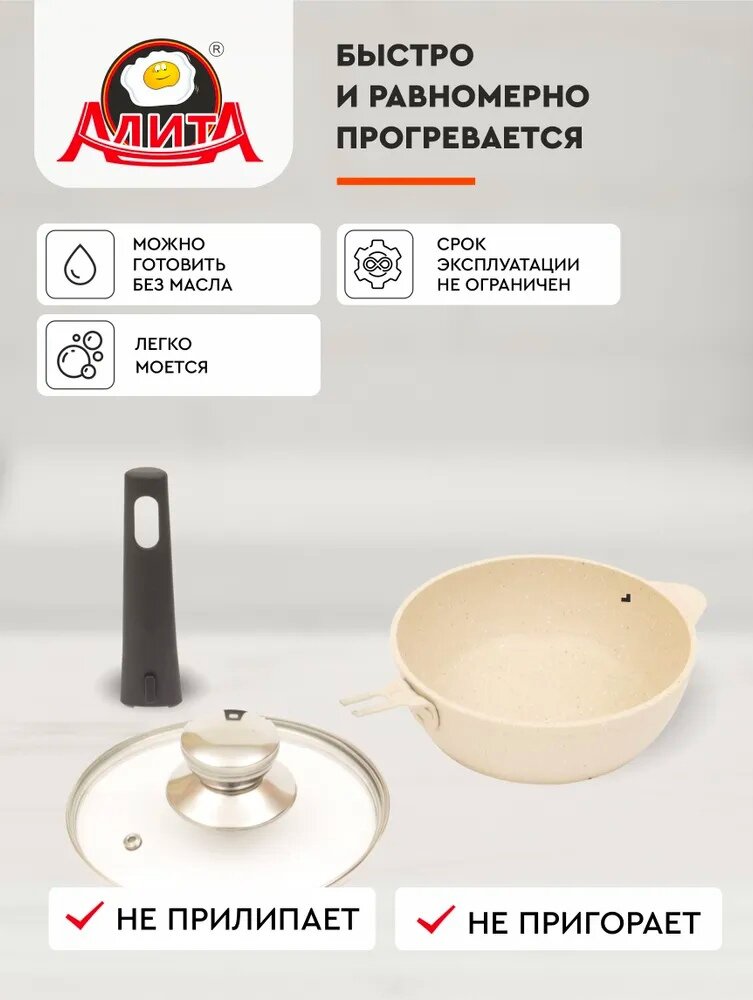 Отзывы на Сковорода с крышкой со съемной ручкой антипригарная маленькая 16 см, Сакура