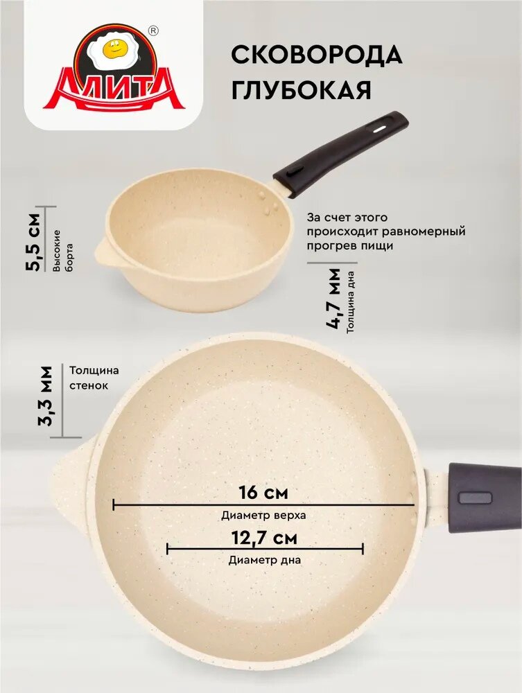 Сковорода с крышкой со съемной ручкой антипригарная маленькая 16 см, Сакура информация: