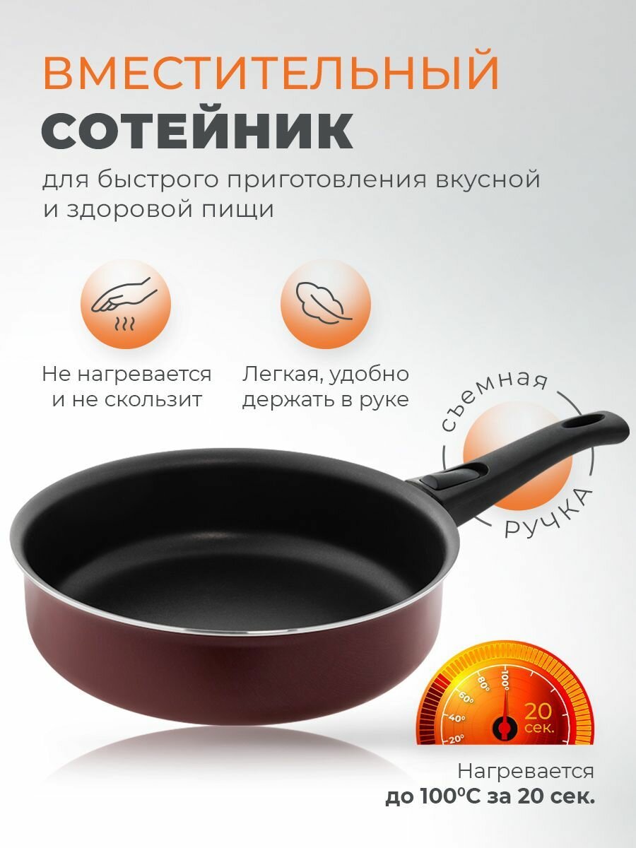 Сковорода с крышкой с антипригарным покрытием 24 см со съемной ручкой Easy Cook SCOVO информация: