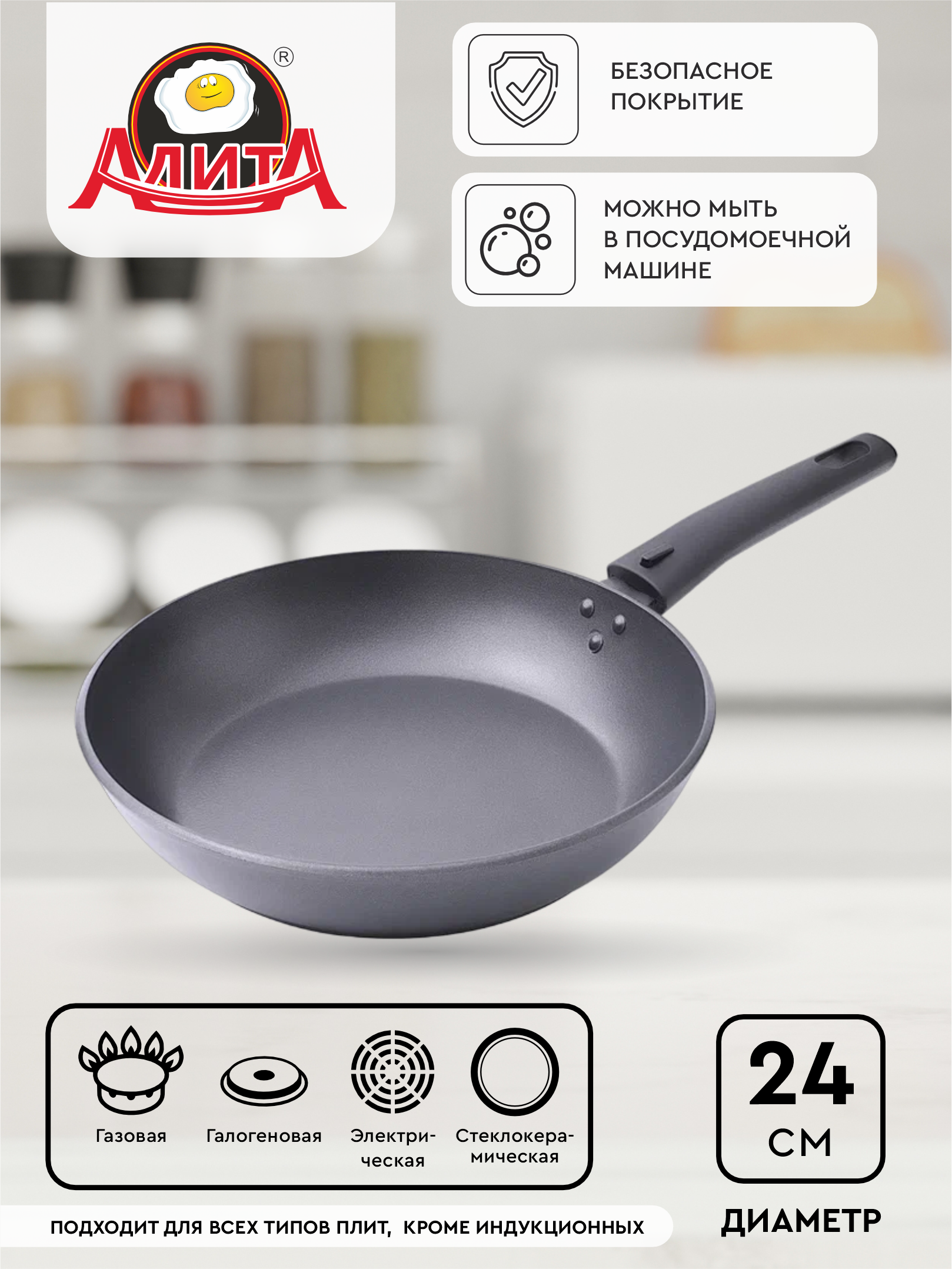 Отзывы на Сковорода 24 см со съемной ручкой антипригарная алюминиевая литая глубокая, Антрацит