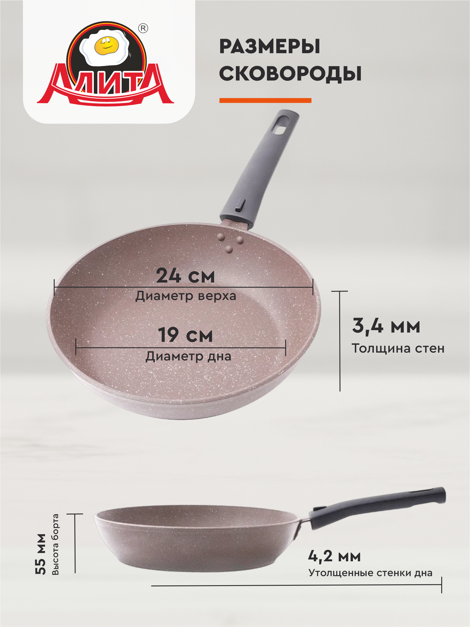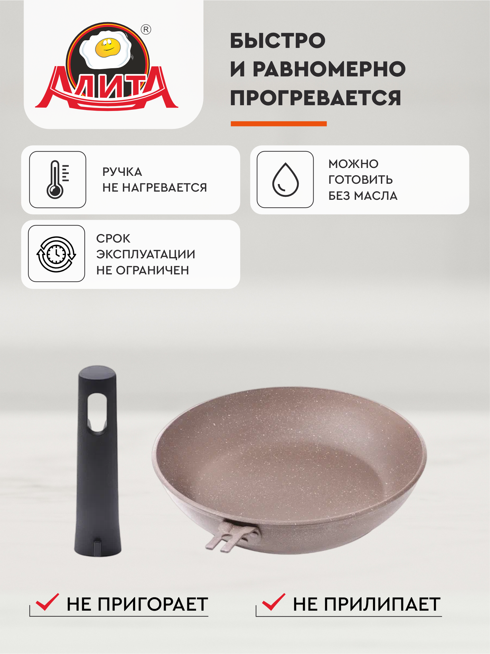 Отзывы на Сковорода 24 см со съемной ручкой антипригарная алюминиевая литая глубокая, Браун