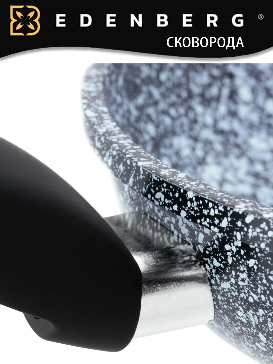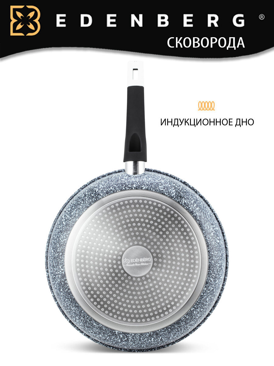 Сковорода с крышкой 24 см и антипригарным гранитным покрытием, литой алюминий Edenberg, индукционная информация:
