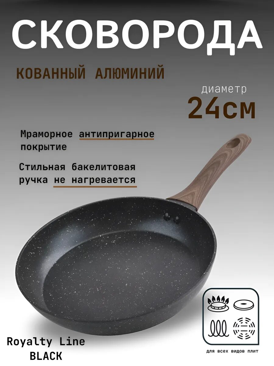 Сковорода из кованного алюминия Royalty Line 24 см OS-24 BLACK информация: