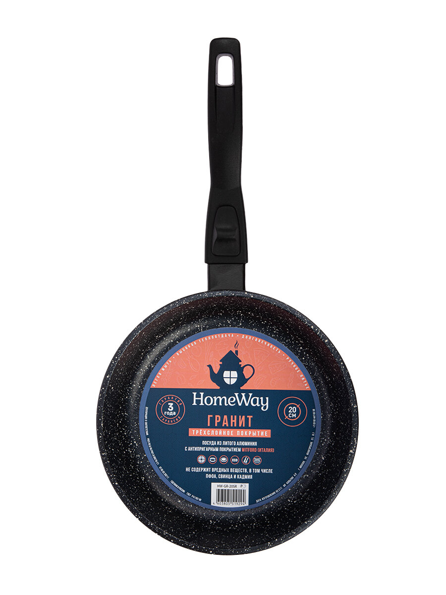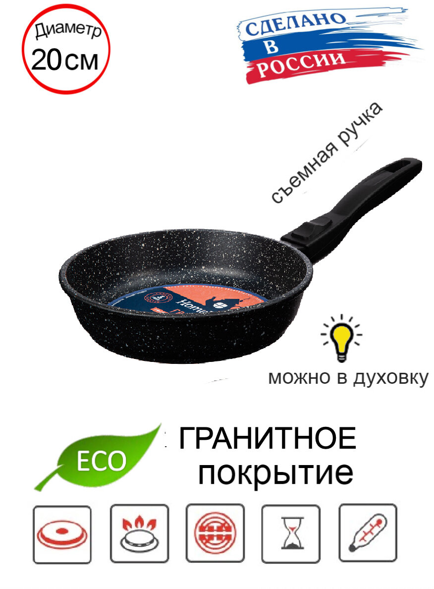 Cковорода HomeWay ECO гранит 20см, с гранитным покрытием и со съемной бакелитовой ручкой информация: