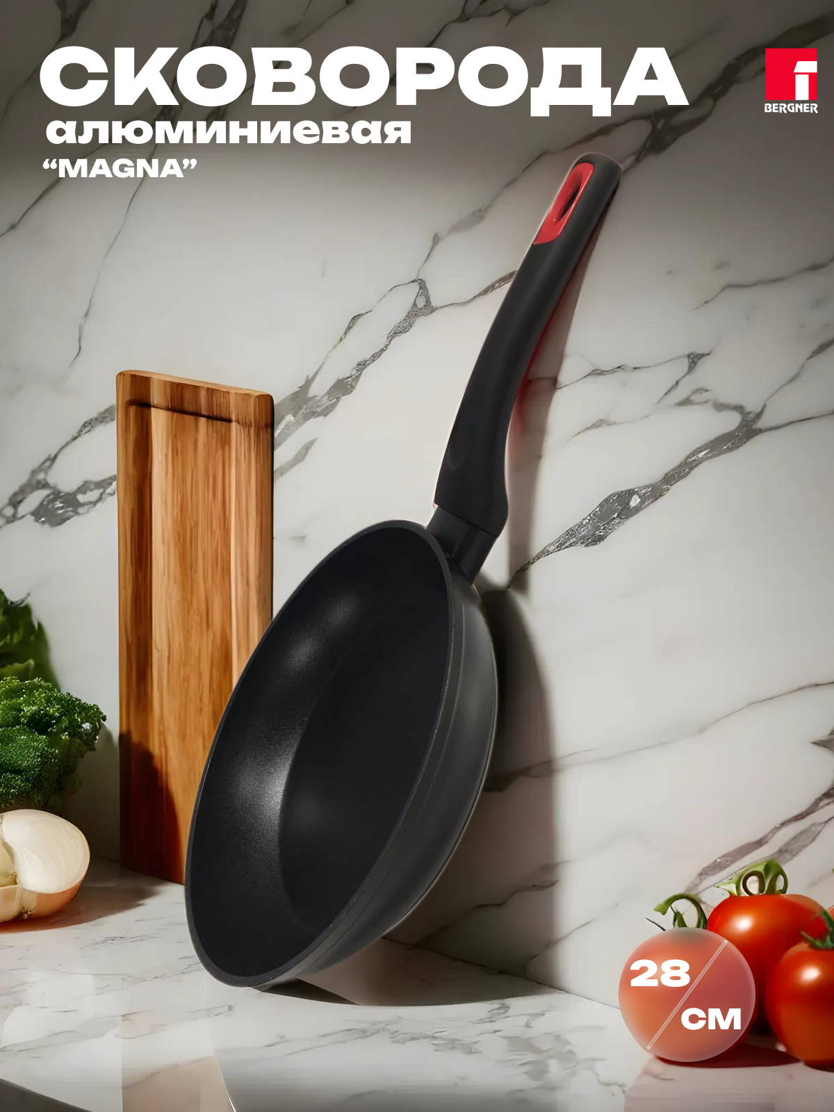 Сковорода алюминиевая 28 см, 5,4 см, Magna, цвет черный, BERGNER информация: