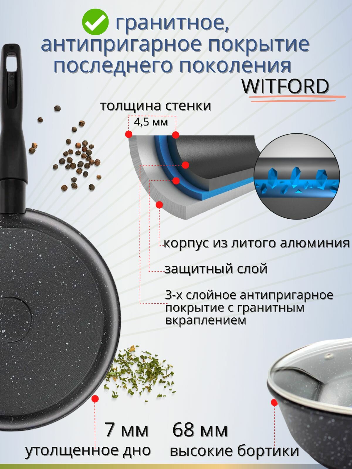 10 цен на Сковорода 28 см с антипригарным гранитным покрытием с крышкой, со съемной ручкой