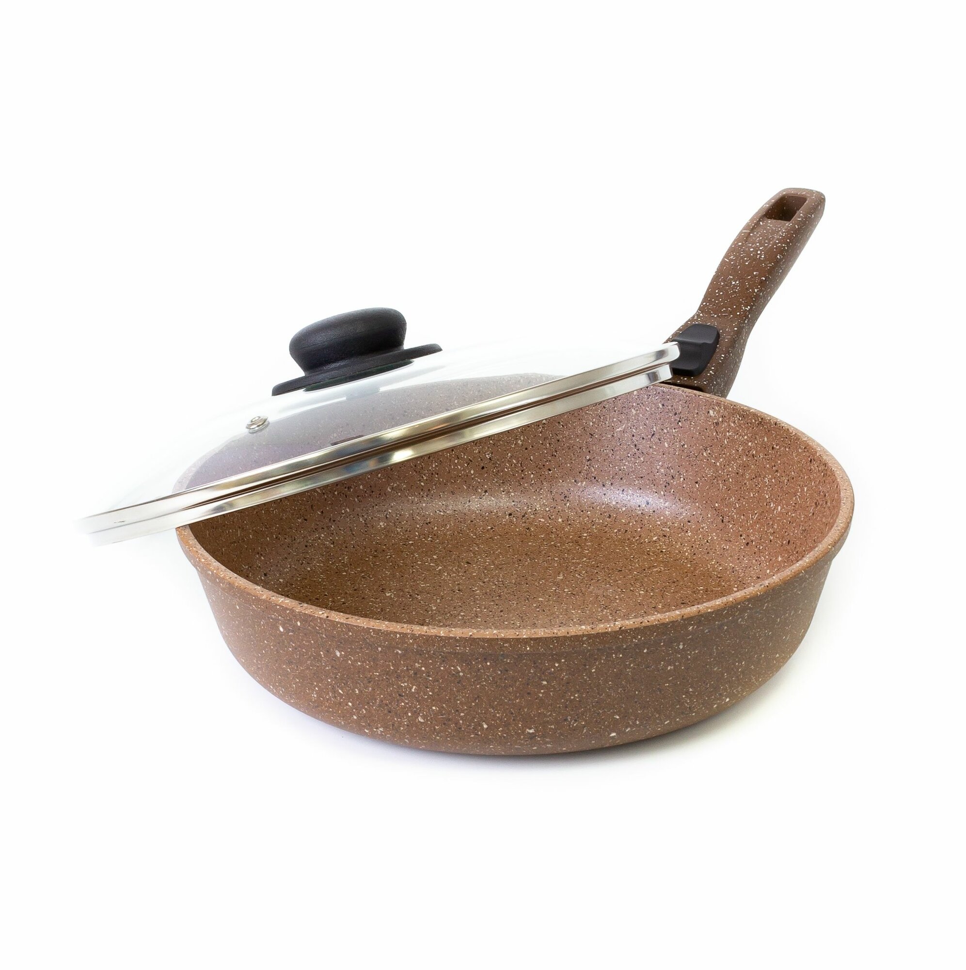 Сковорода 26 см с антипригарным гранитным покрытием мокко с крышкой, со съемной ручкой информация:
