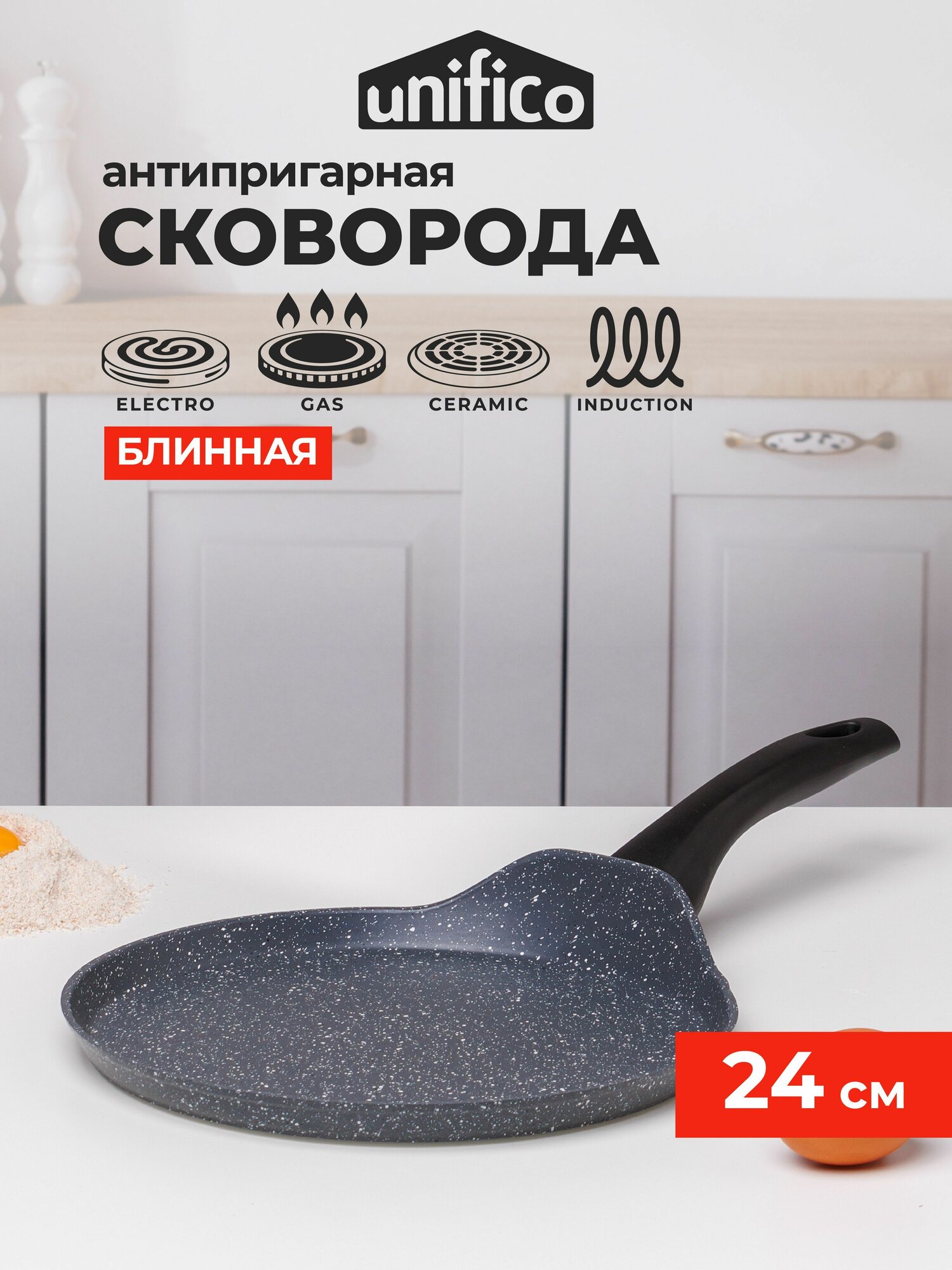 Отзывы на Сковорода блинная 24 см для индукционной плиты UNIFICO Vigoroso Grigio