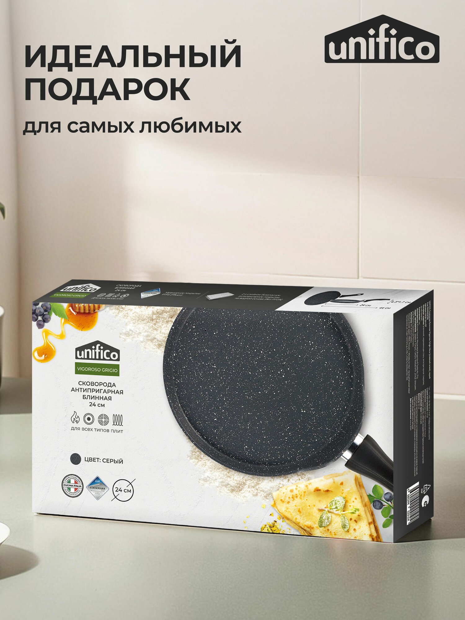 Сковорода блинная 24 см для индукционной плиты UNIFICO Vigoroso Grigio информация: