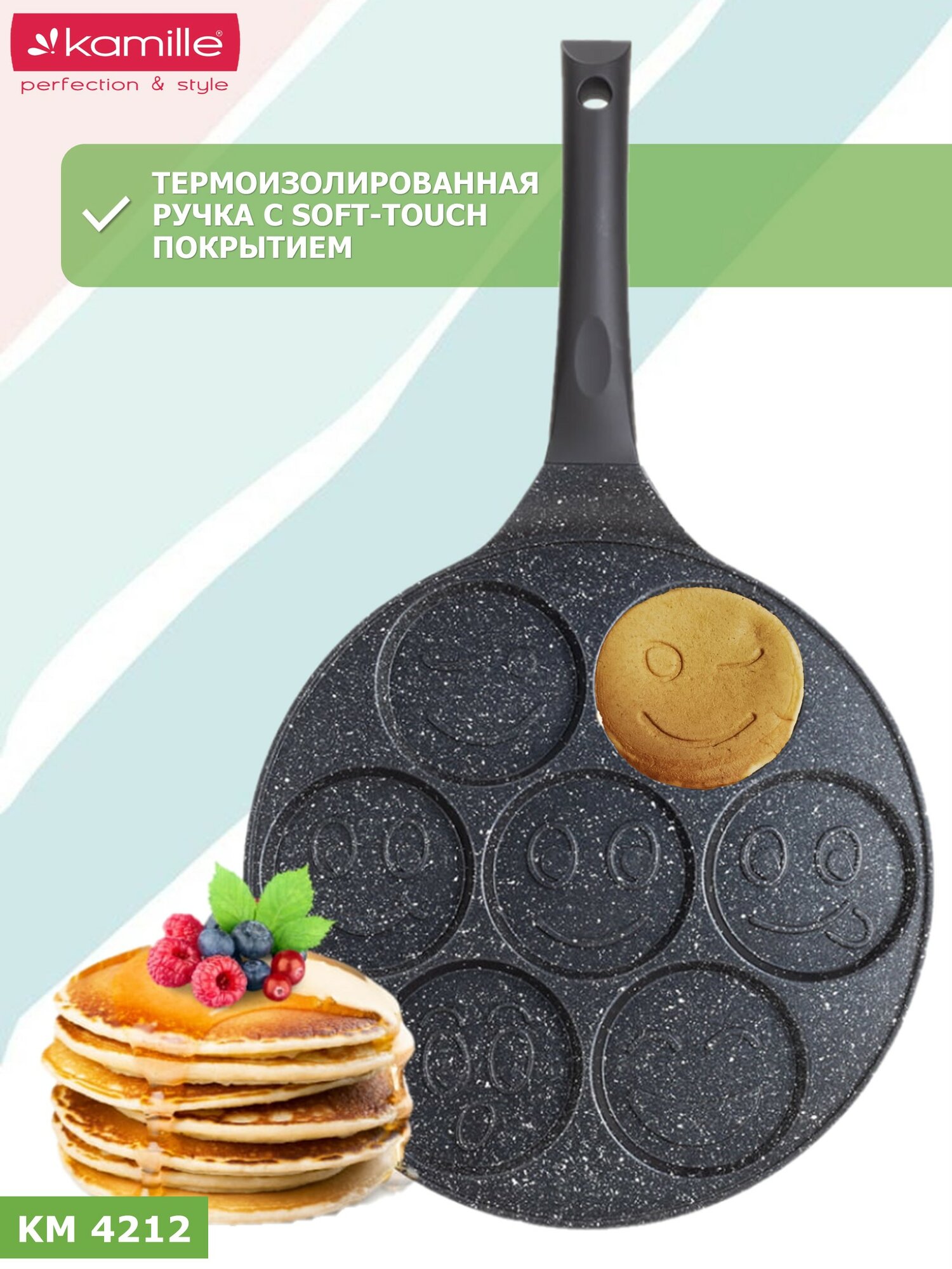 10 цен на Сковорода для оладий 26 см. Kamille КМ 4212 смайлики (черный)