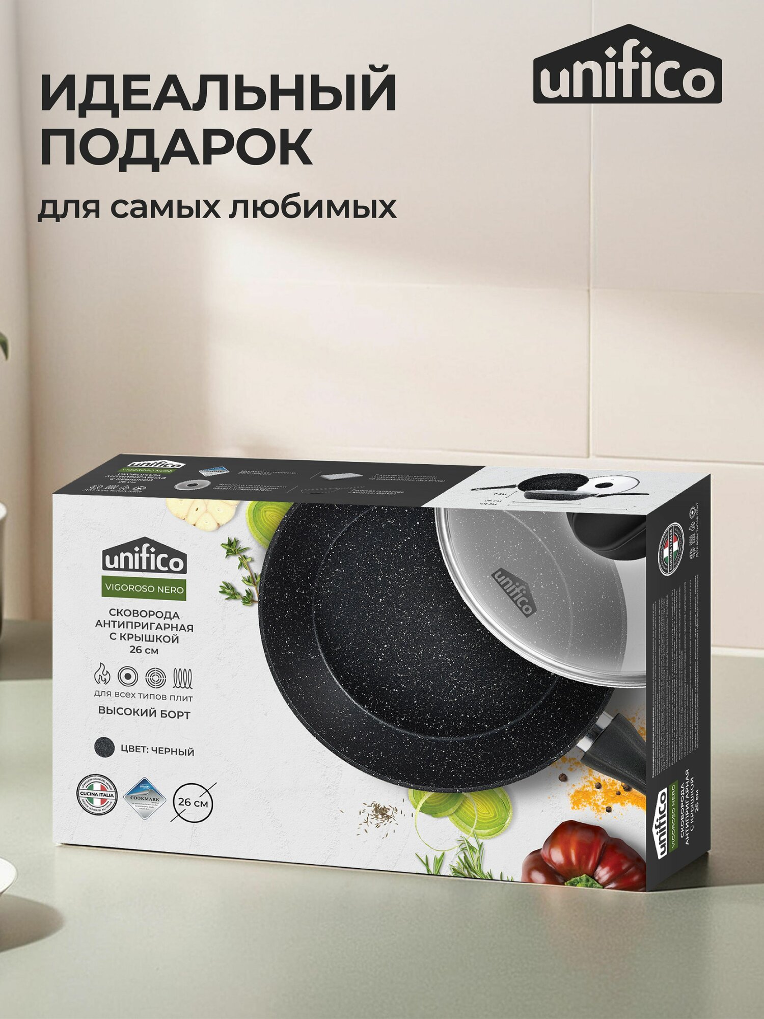 Отзывы на Сковорода с крышкой глубокая 26 см (индукция) UNIFICO Vigoroso Nero (широкое дно)