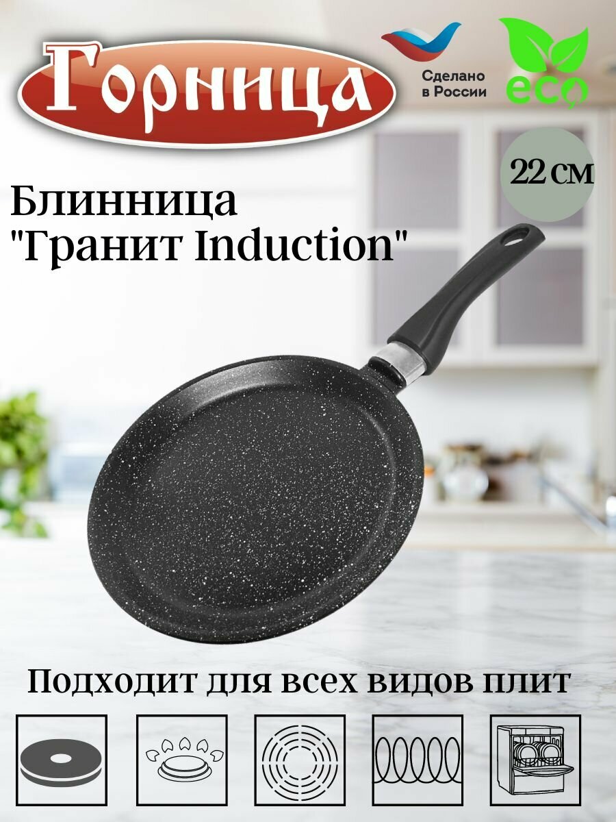 Сковорода блинная 22 см Гранит индукция, алюминий, мрамор ТМ Горница информация: