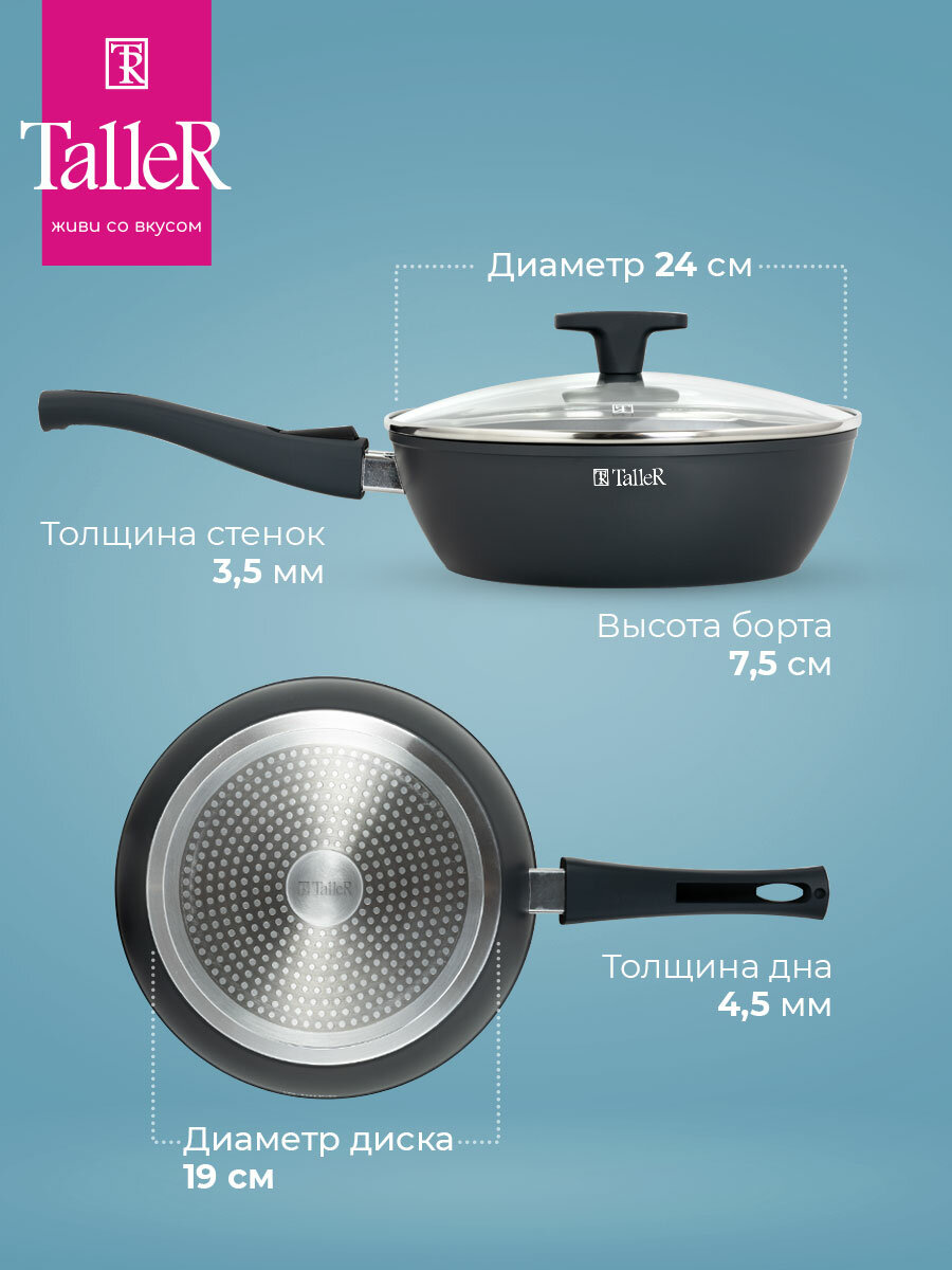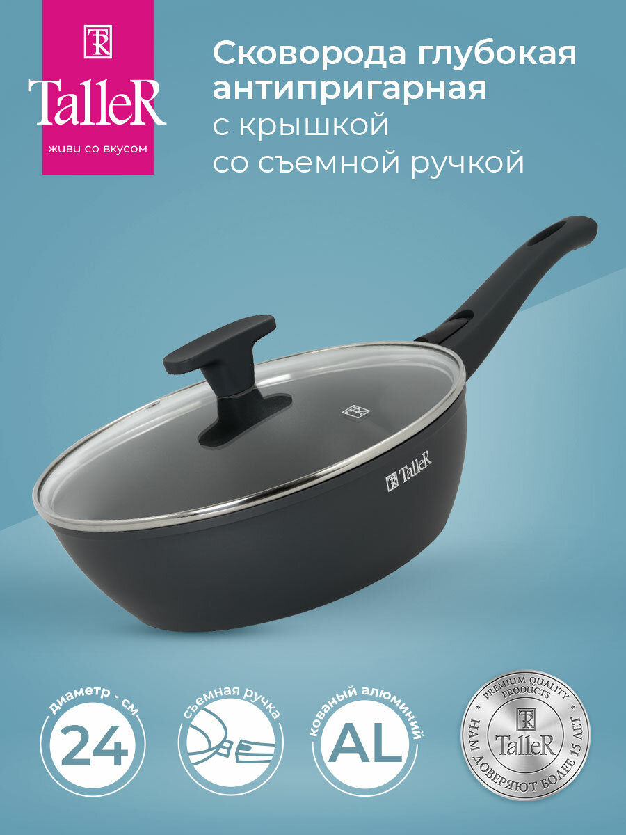 Сковорода глубокая антипригарная с крышкой и съемной ручкой TalleR TR-44120 24 см информация: