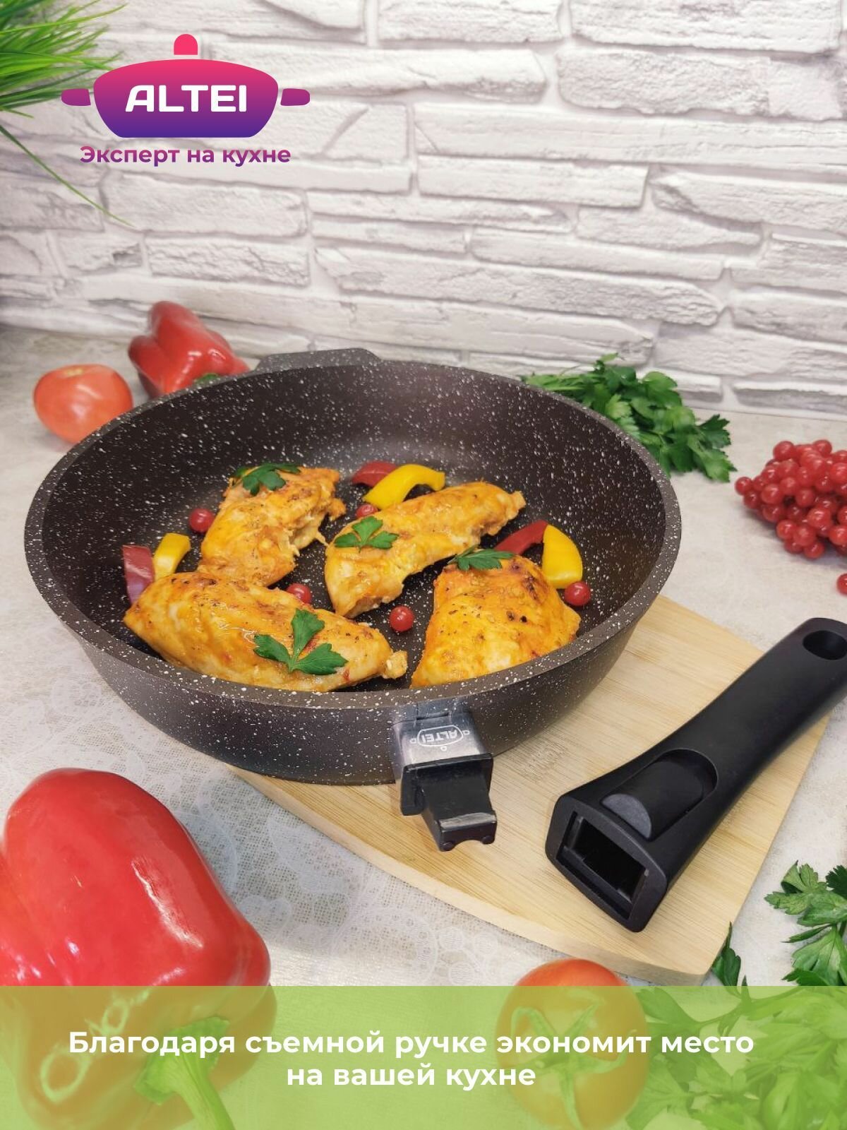 Сковорода ALTEI с антипригарным покрытием 26см со съёмной ручкой с крышкой информация: