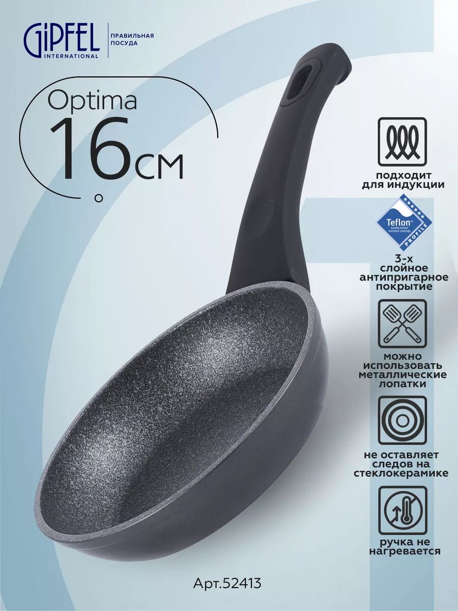 Алюминиевая сковорода Gipfel Optima 52413 16 см черный/серый информация:
