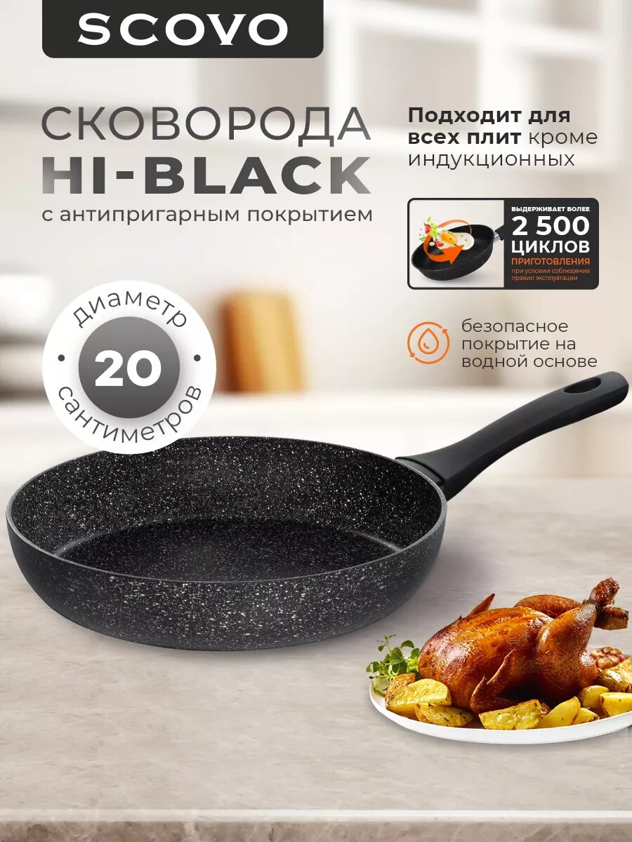 Сковорода 20 см SCOVO Hi-Black 1 л алюминиевая с антипригарным покрытием с фиксированной ручкой информация: