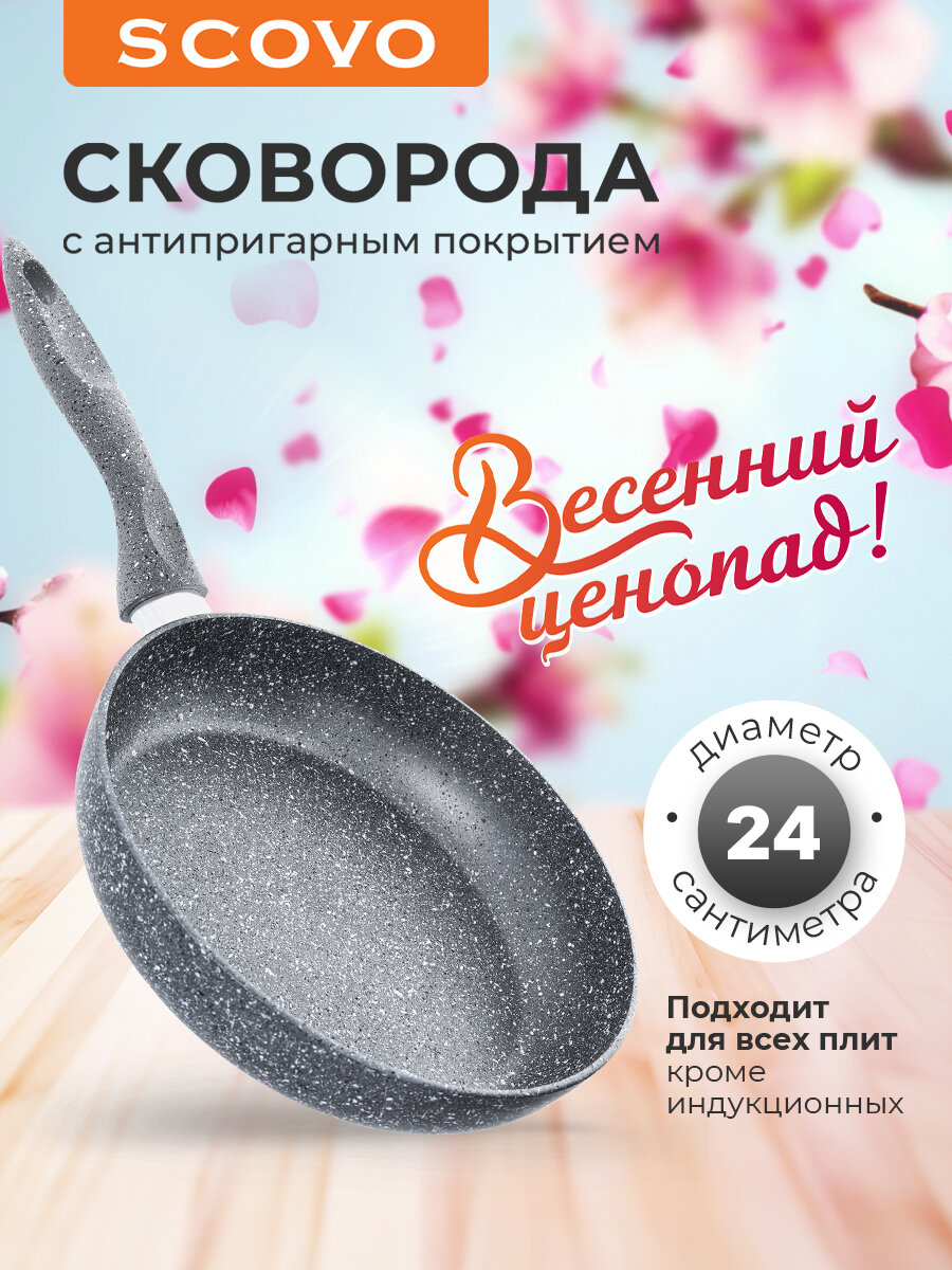 10 цен на Сковорода без крышки 24 см с антипригарным покрытием с фиксированной ручкой SCOVO Stone Pan