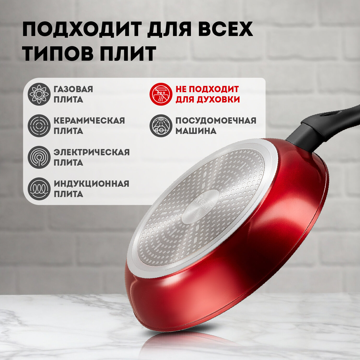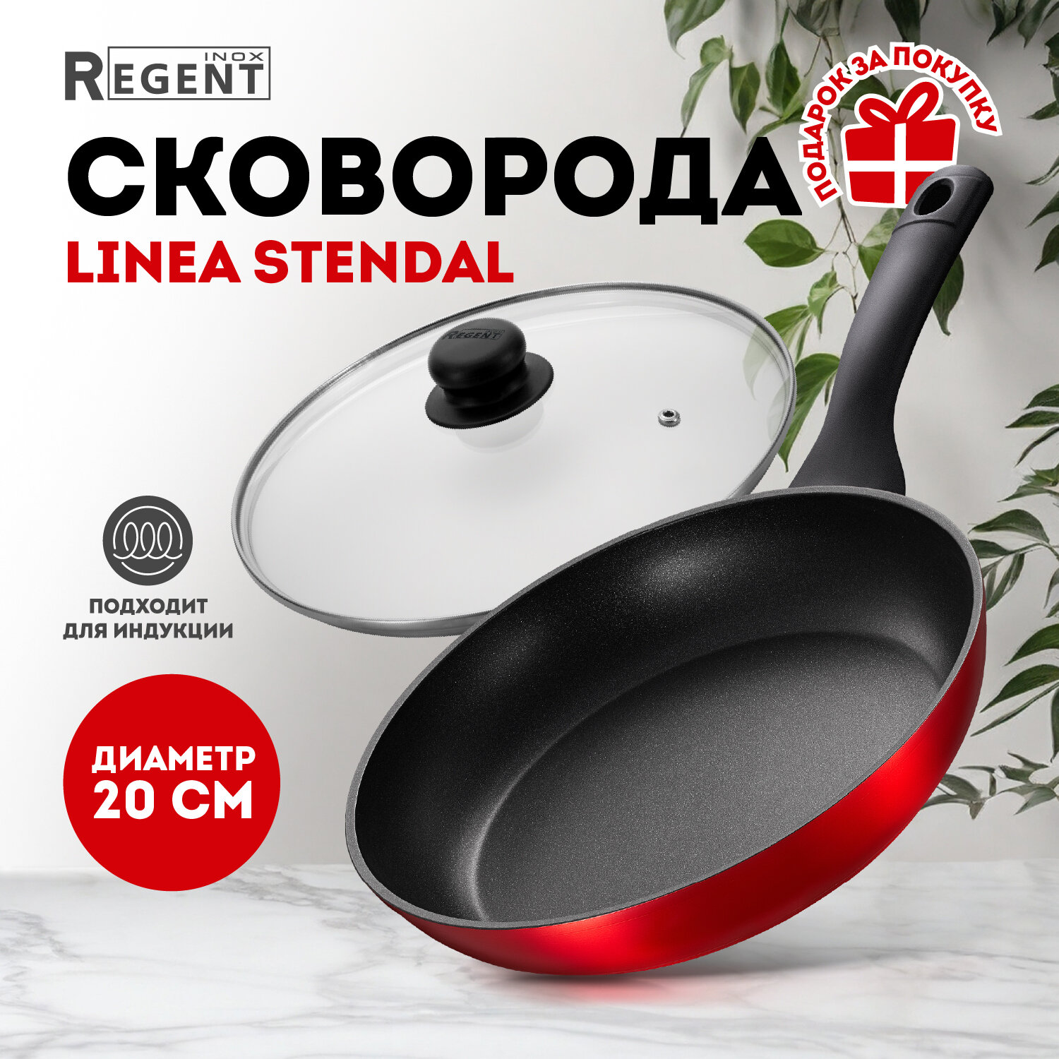 Отзывы на Сковорода Regent inox Linea Stendal 20 см, с крышкой, антипригарная, индукционная, красная