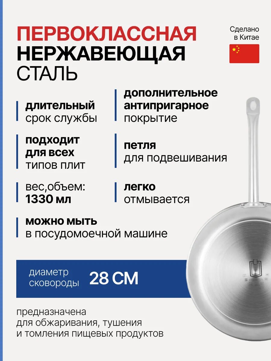 Сковорода нержавеющая сталь, 28 см, Марта, без крышки, катюша, арт. К-130-280-0