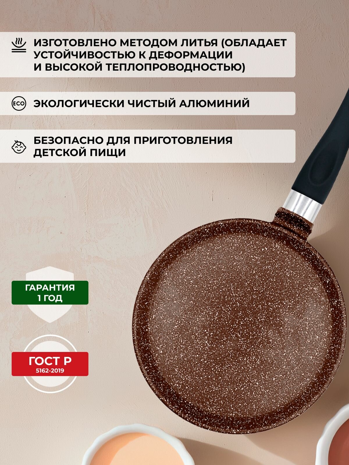 Сковорода блинная 22см VICTORIA "Classic" Brown с антипригарным покрытием информация: