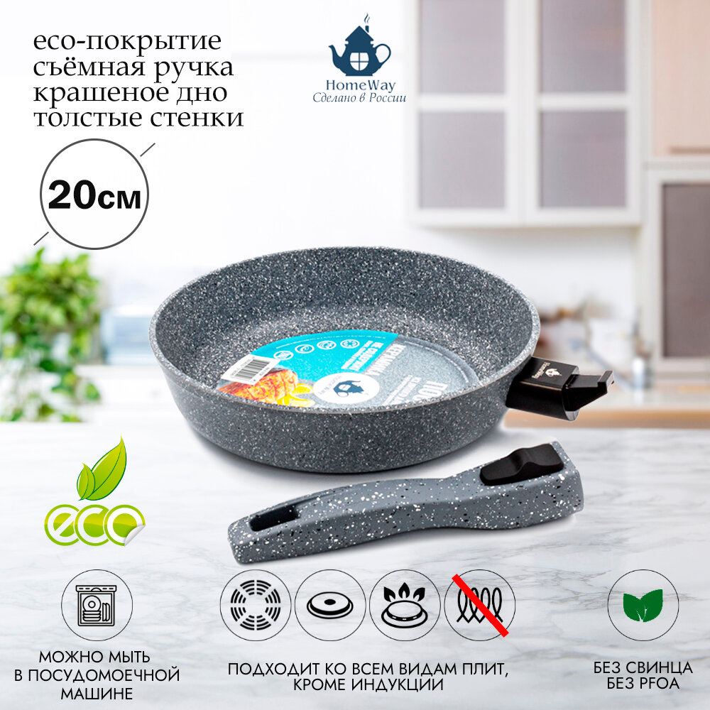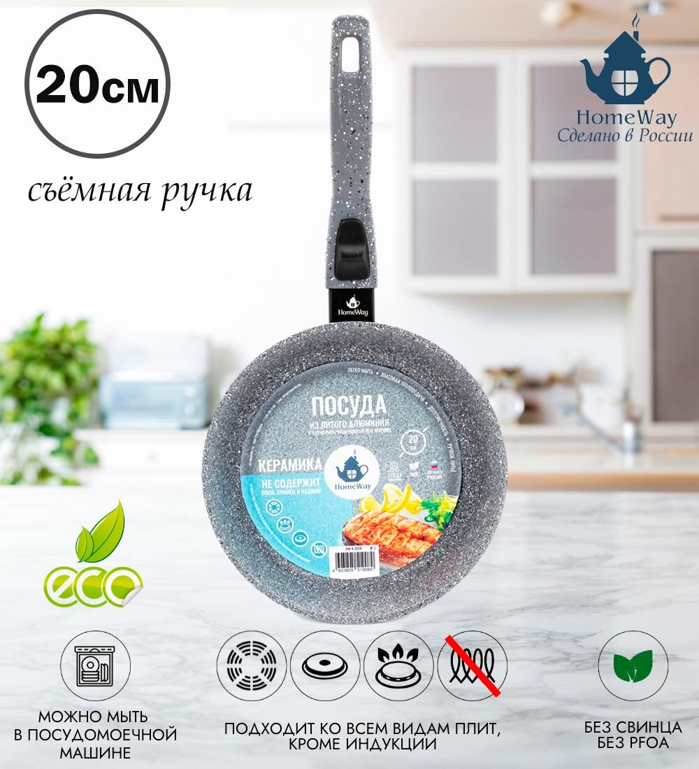 Сковорода литая 20 см, серия керамика, с антипригарным покрытием, съемная ручка, HomeWay информация: