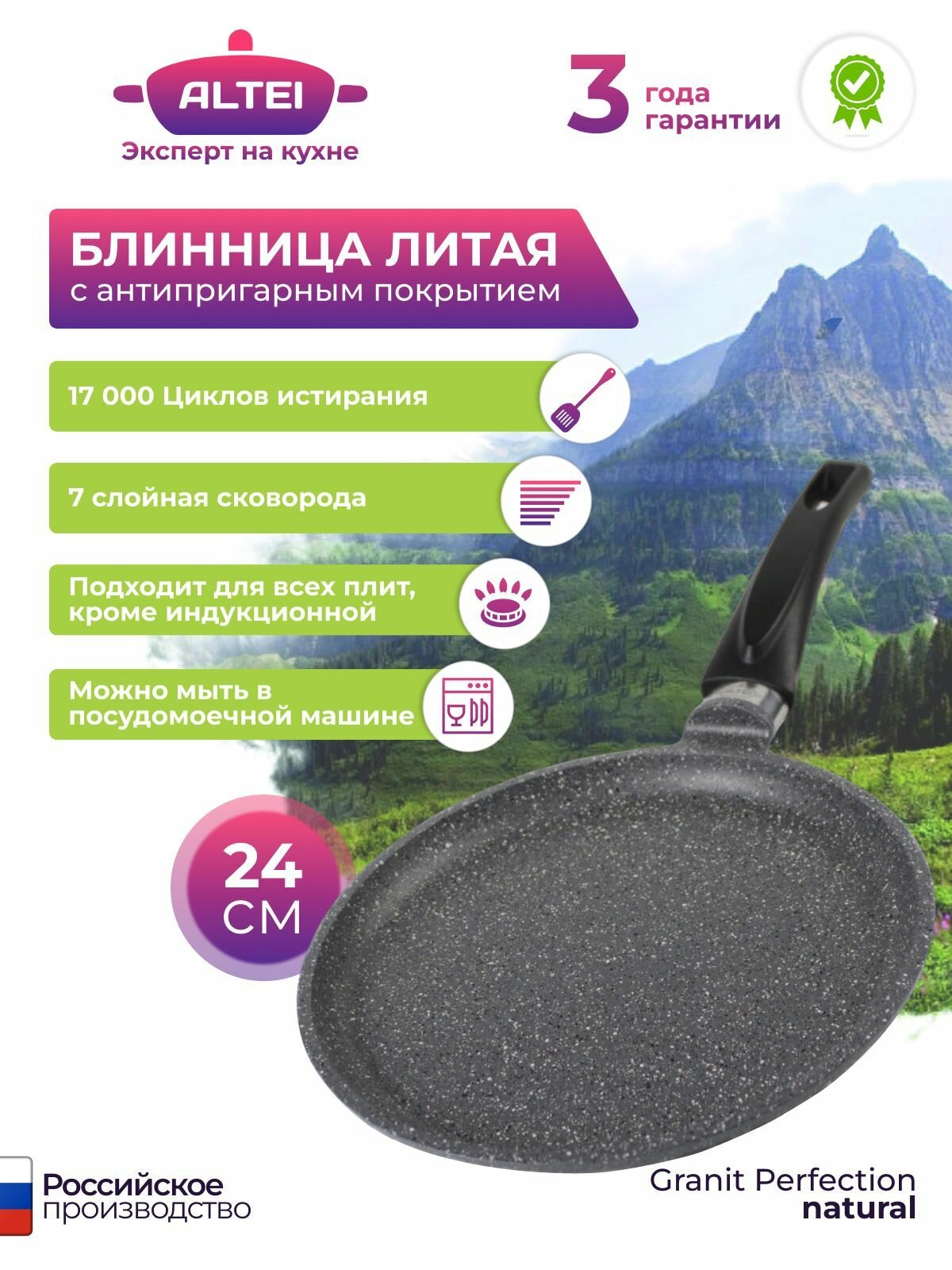 Сковорода антипригарная блинная 24 см информация: