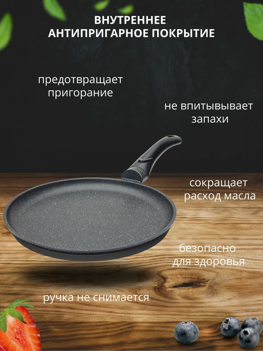 10 цен на Сковорода блинная, блинница 22см "Премьер" с антипригарным покрытием Гранит, ручка несъемная, низкие борта