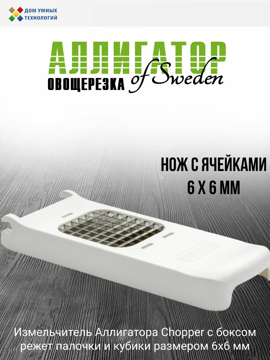 Овощерезка Аллигатор/Alligator Chopper с боксом, ячейка ножа 6х6 мм, белый, Швеция информация: