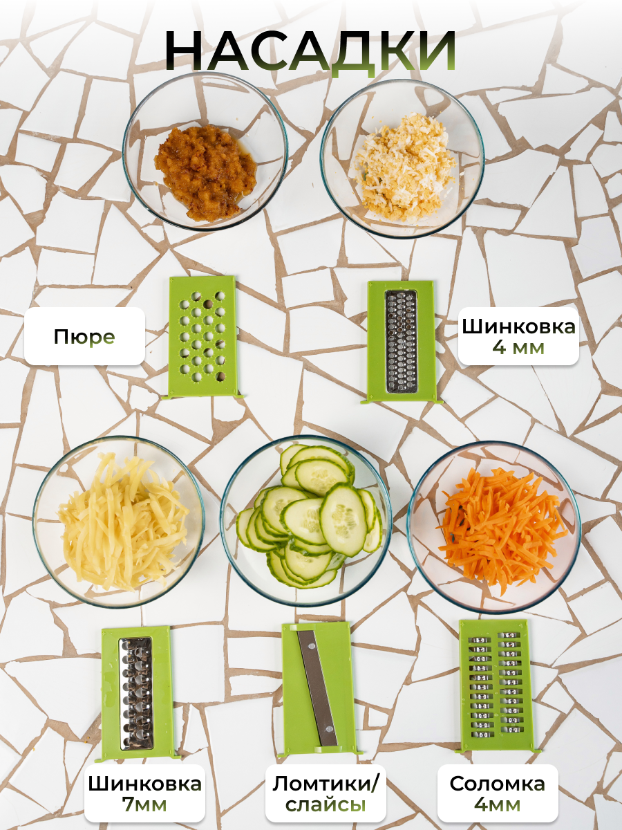 Отзывы на Овощерезка многофункциональная "5 в 1", пластик, нержавеющая сталь, 5 сменных насадок