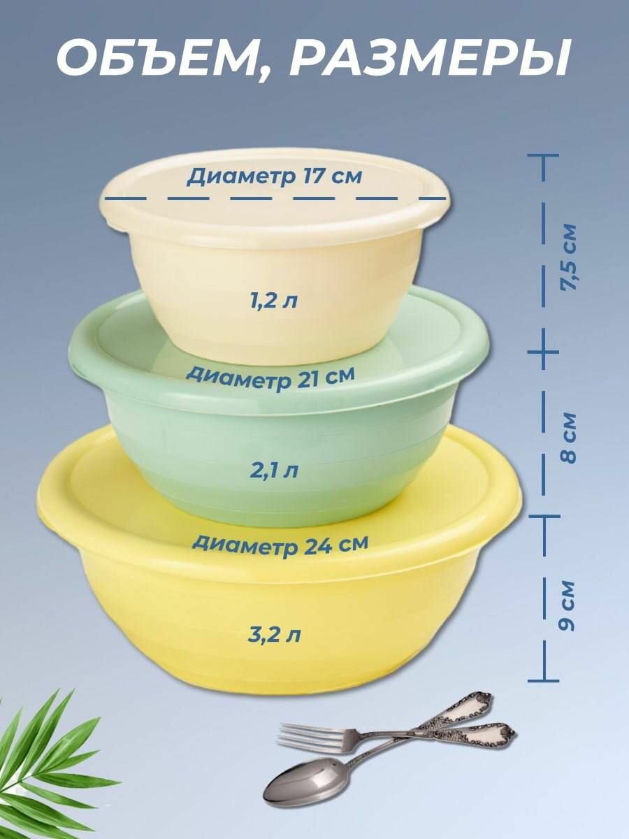 Набор салатников с крышкой SparkPlast 3 шт, объемом по 3,2л. - 2,1л. - 1,2л. пищевой пластик информация: