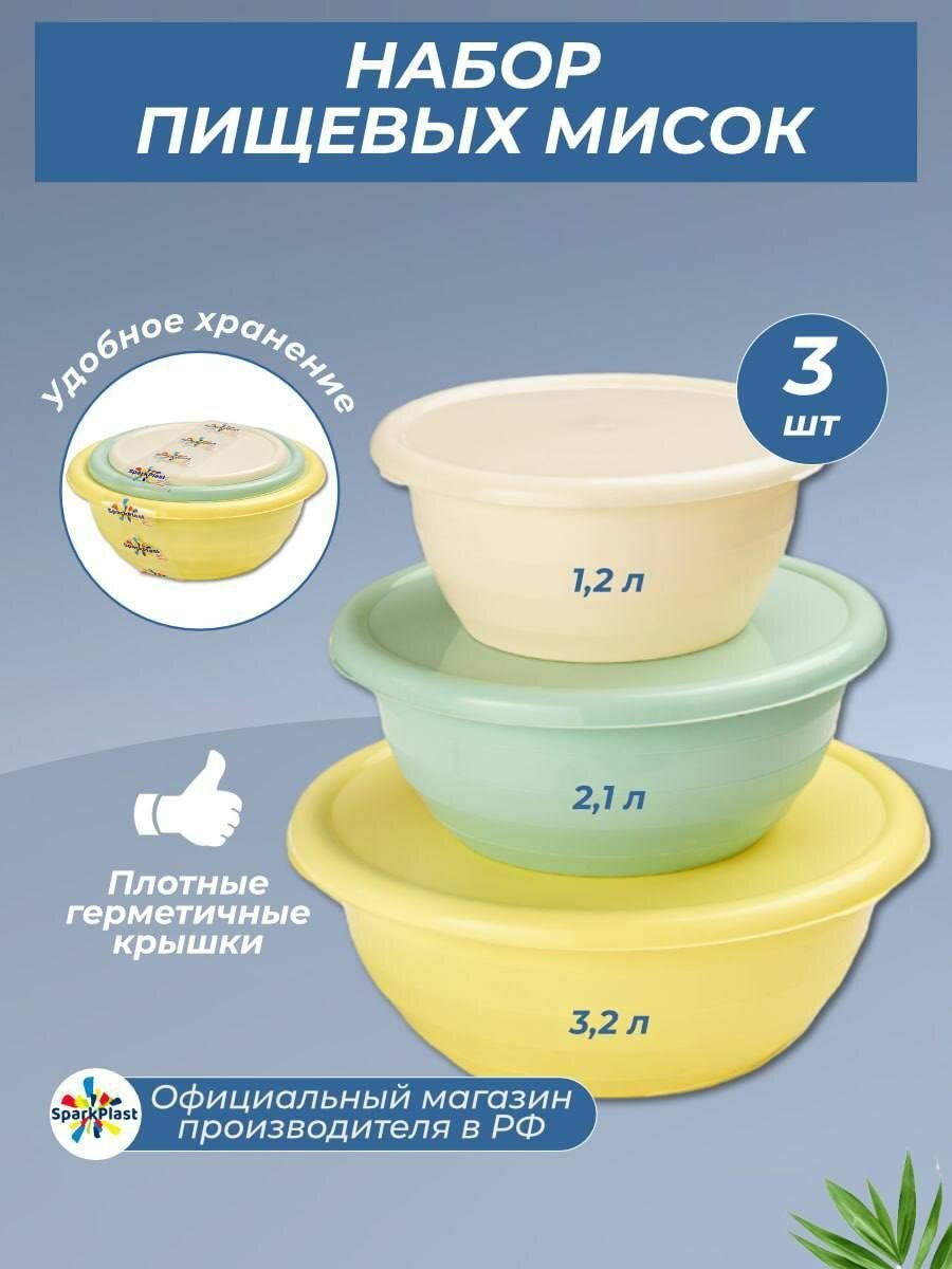 10 цен на Набор салатников с крышкой SparkPlast 3 шт, объемом по 3,2л. - 2,1л. - 1,2л. пищевой пластик