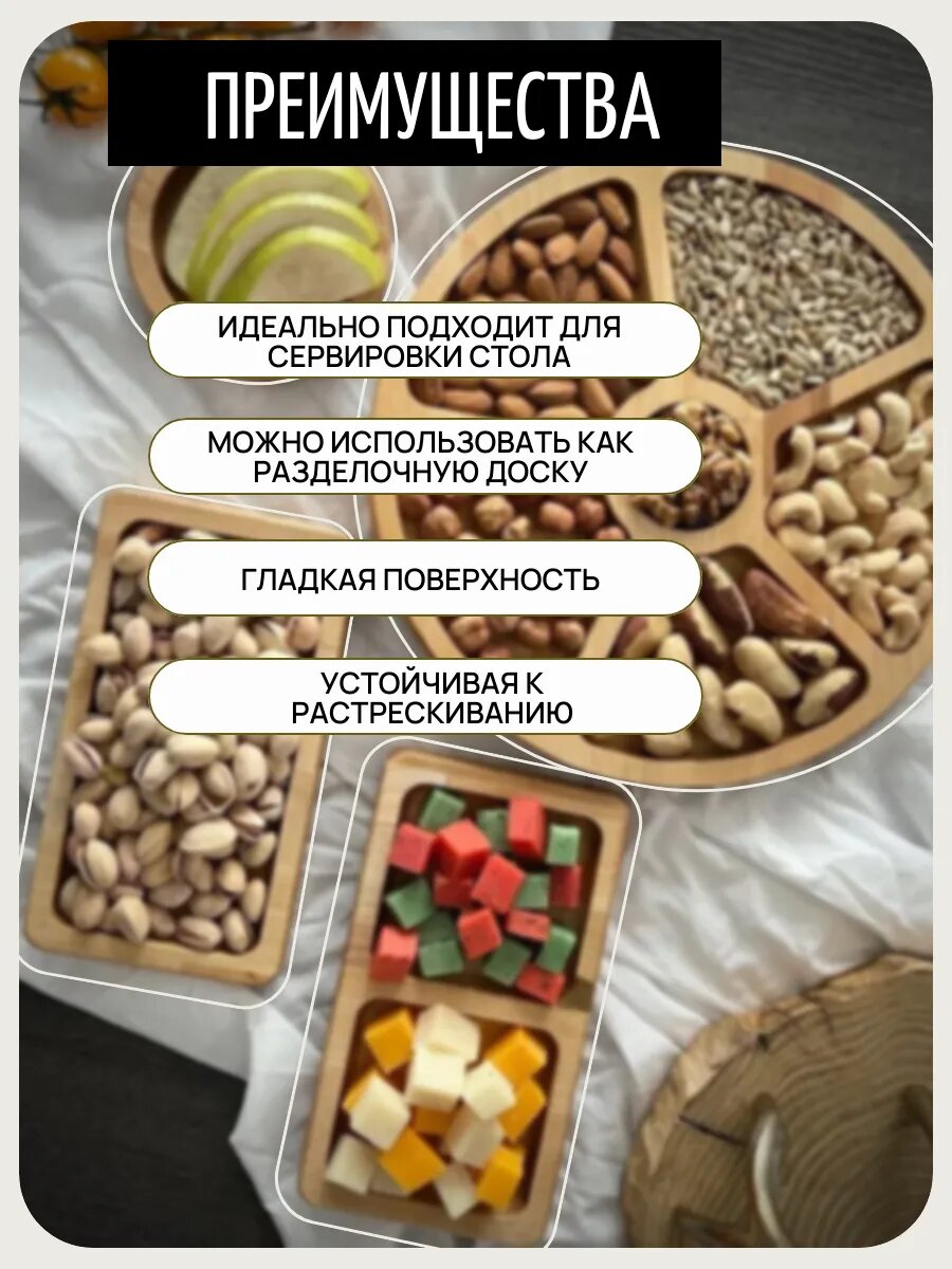 10 цен на Набор деревянных менажниц, 4 шт, прямоугольные, скандинавское дерево, бежевые