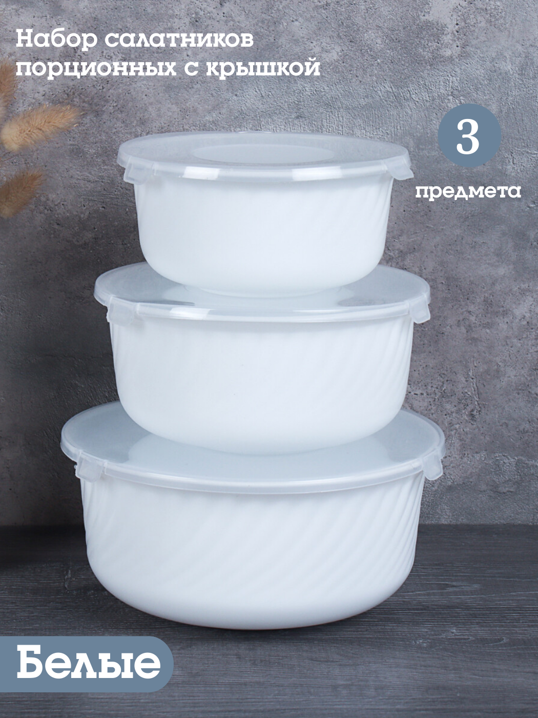 10 цен на Салатник с крышкой 3 штуки "Белый" набор салатников, форма для холодца