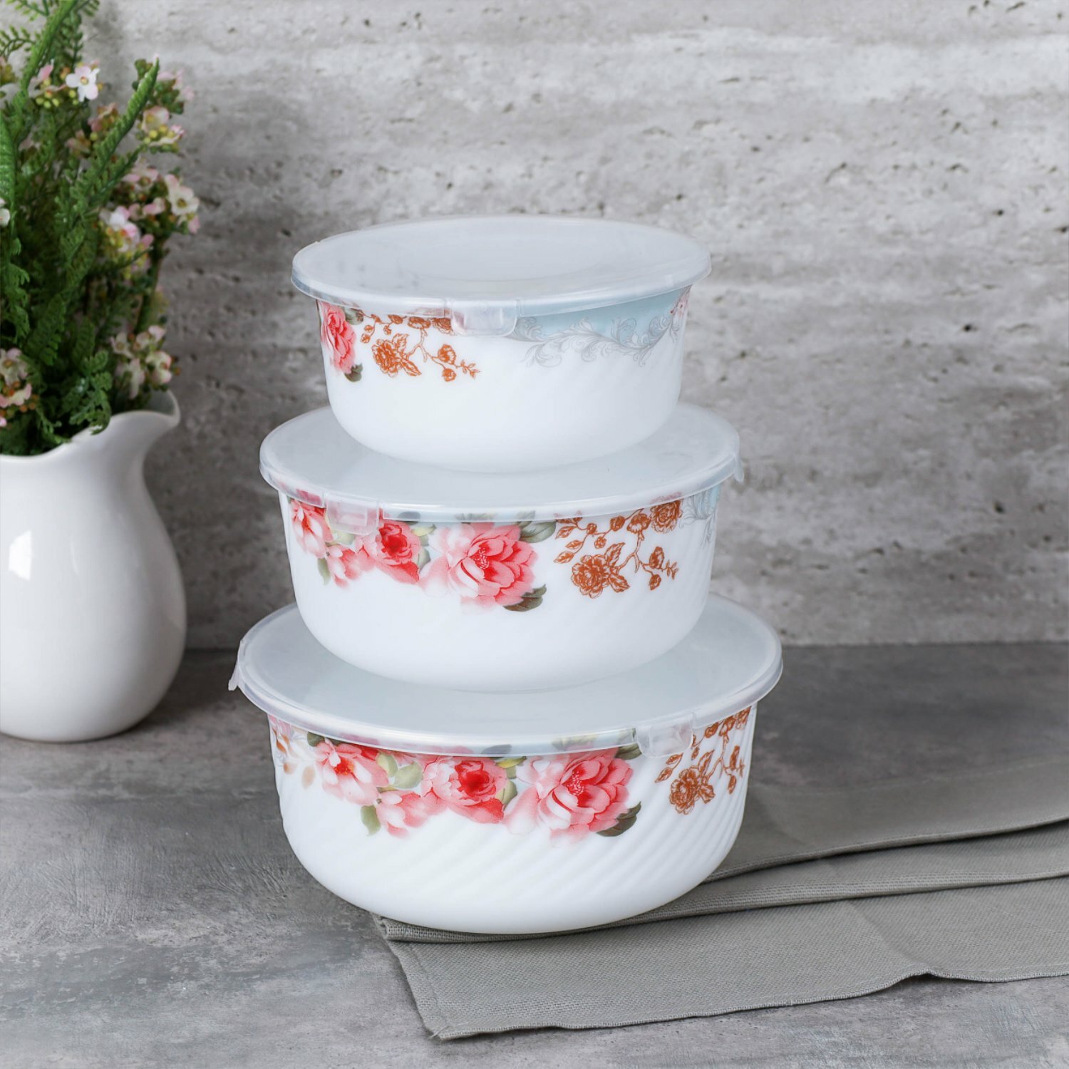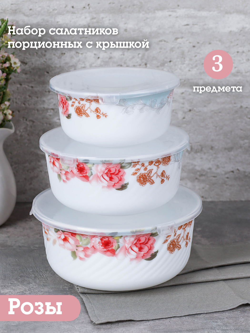 10 цен на Салатник с крышкой 3 штуки "Розы на голубом" набор салатников, форма для холодца
