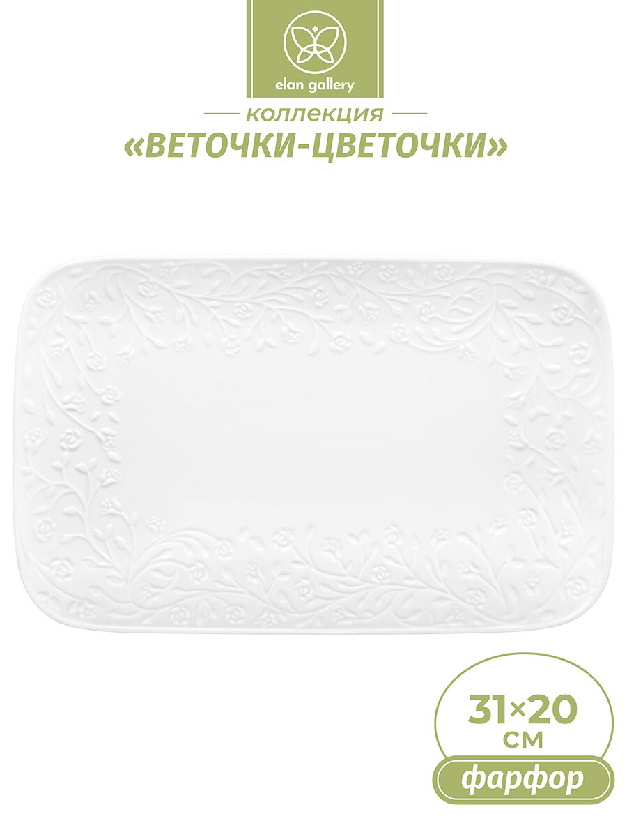 Блюдо прямоугольное 31*20,5*2,5 см Elan Gallery "Веточки-цветочки" малое информация: